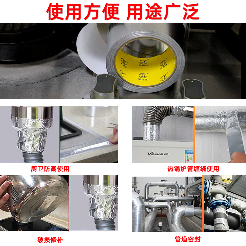 1 meter wide aluminum foil tape thickened tin foil paper fireproof high temperature resistant anti-aging single-sided adhesive self-adhesive aluminum paper Water pipe seal Water heater hood Flame retardant leak repair