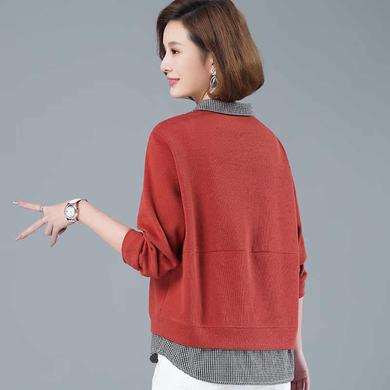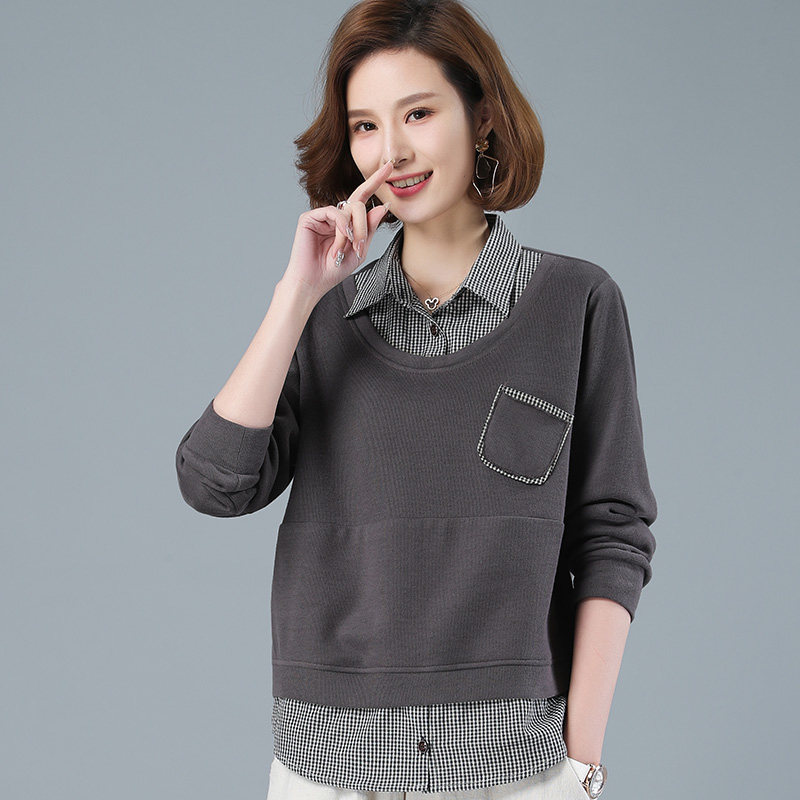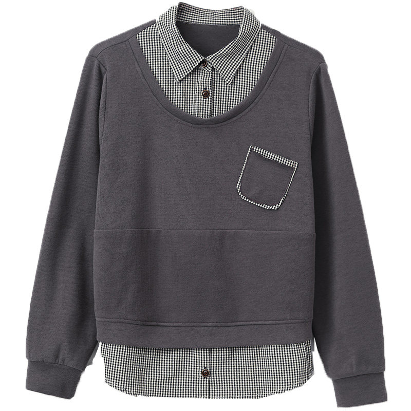 The Remembrance Show 2022 Spring Dress New Thick Cotton T Women's Sleeve Head Plaid Shirt Collar Fake Two Fashion Casual Splicing