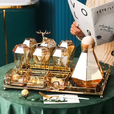 Nordic ins style simple glass teacup water cup Household cup cup holder set living room hospitality drinking cup
