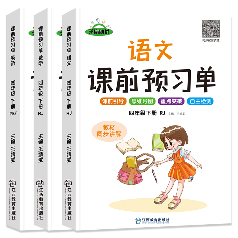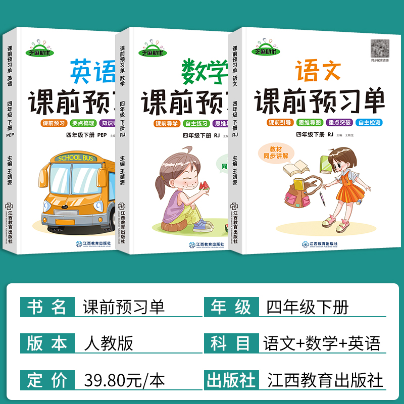 Grade 4 Upper Book Chinese + Mathematics + English (3 books) - Lessons (Send new word preview card + double-sided tape)