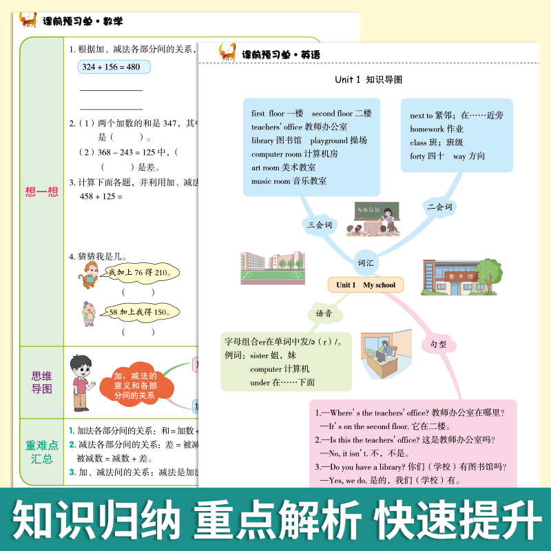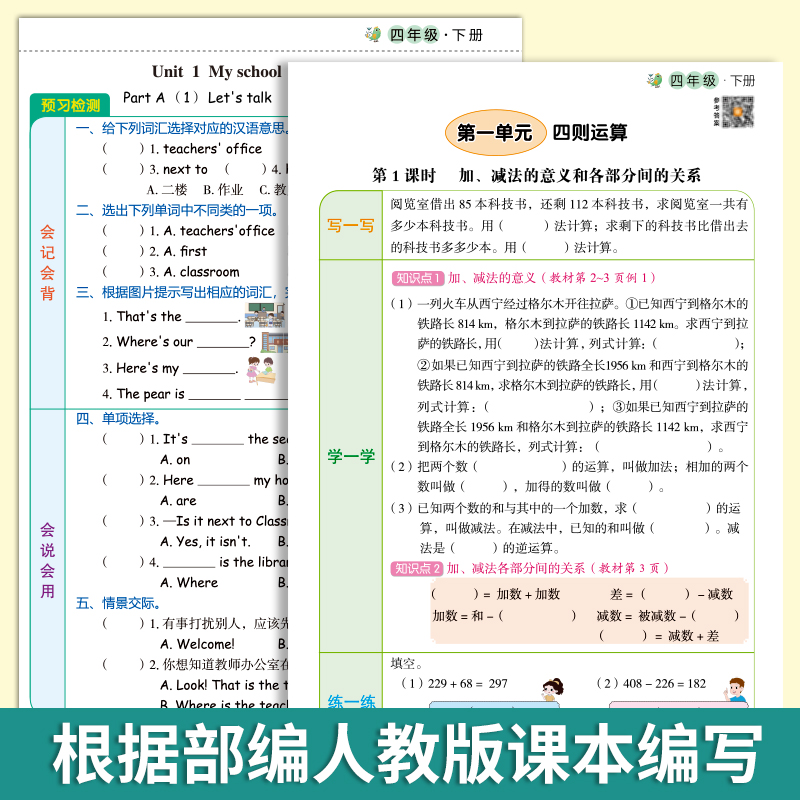 Grade 4 Upper Book Chinese + Mathematics (2 books) (Send word preview card + double-sided tape)