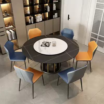 Rock plate dining table Solid wood round table with turntable Household small apartment round dining table Modern simple light luxury round dining table