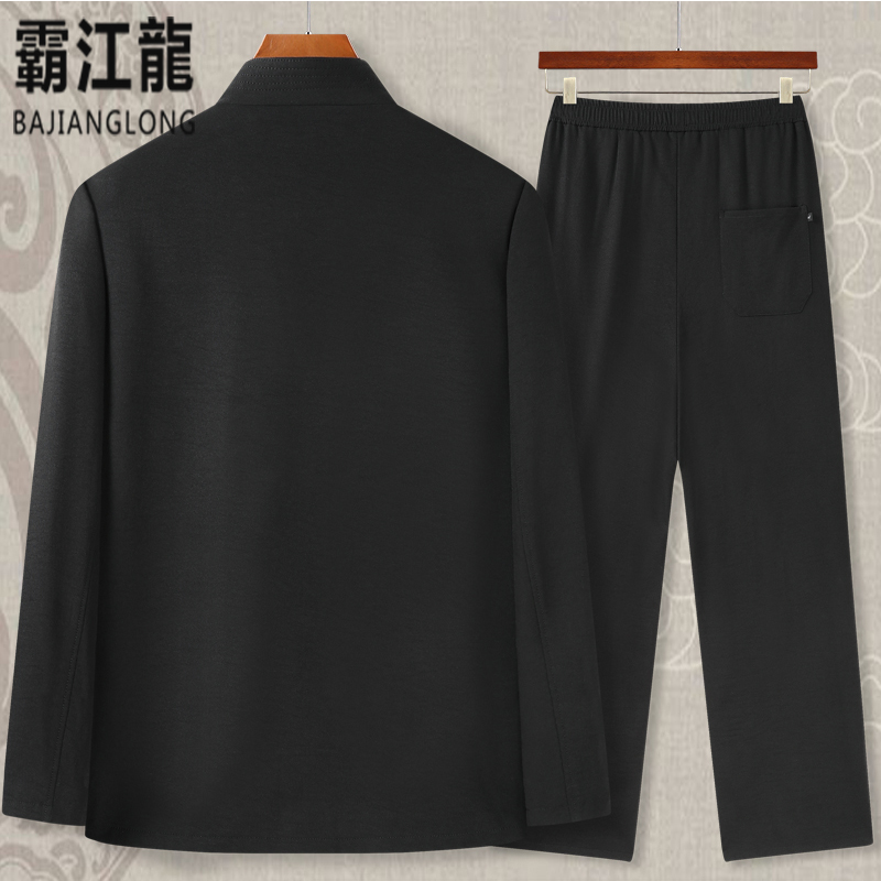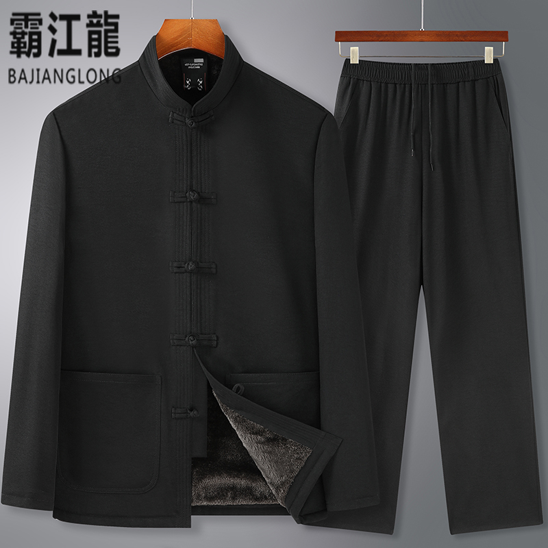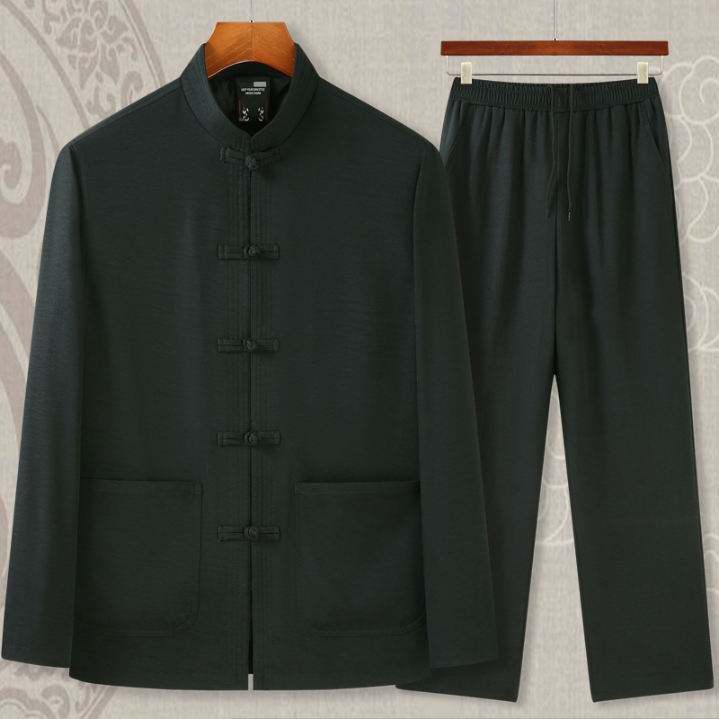 Spring and autumn Tang dress men's coat Chinese style grandpa thick section middle-aged Hanfu old man velvet Dad thin suit