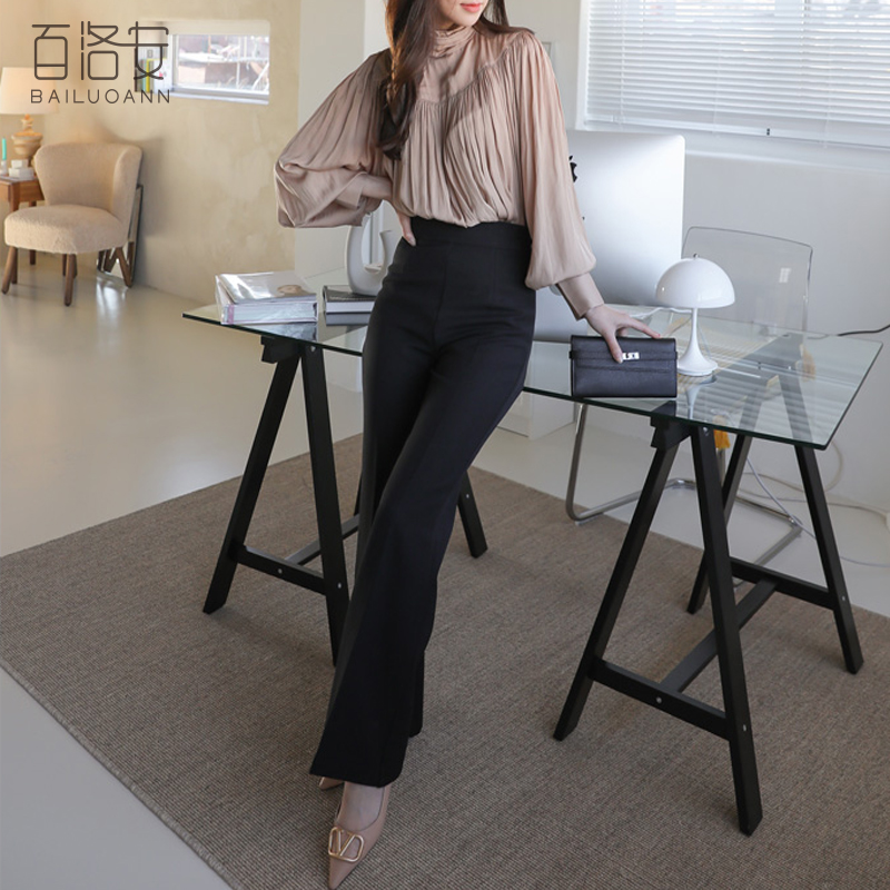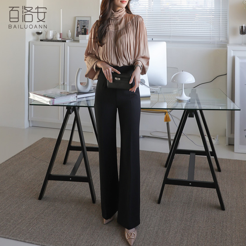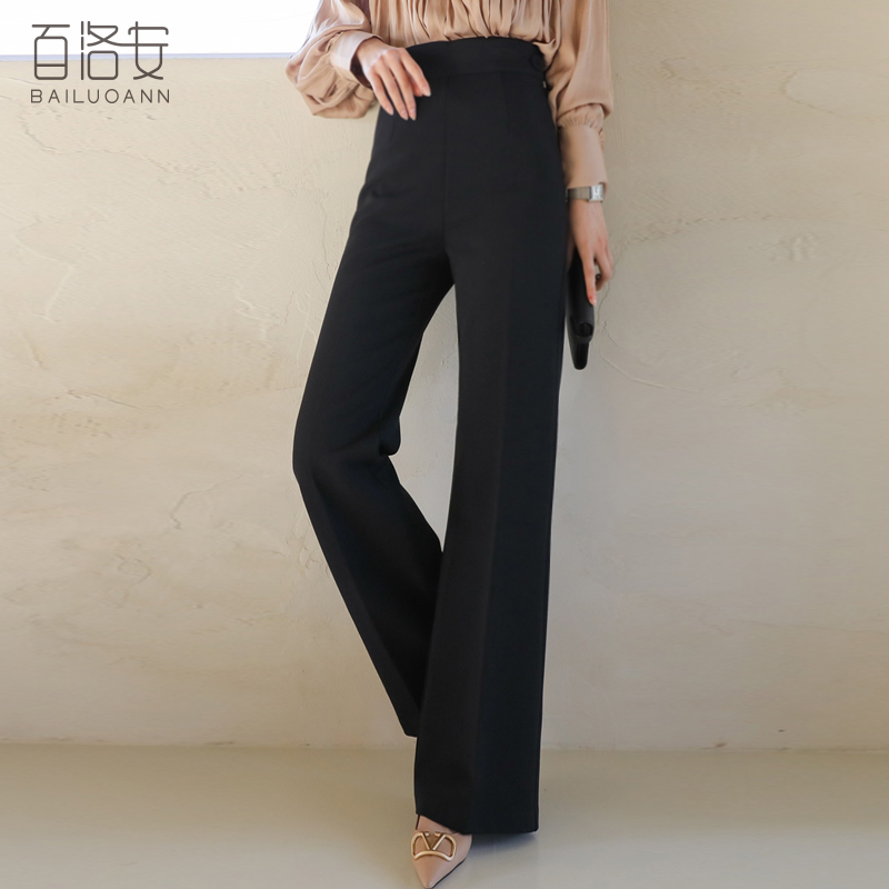 100 Loane Lady Western Dress Pants Spring Dress New Temperament High Waist Display Slim Fit Pants Woman Black Commuter Long Pants Wide Pants
