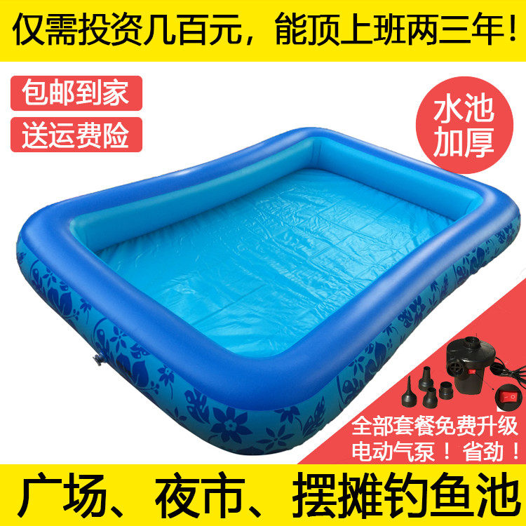 Fishing toy pool set Children's magnetic square stall Inflatable large baby fishing fish play water thickened stall