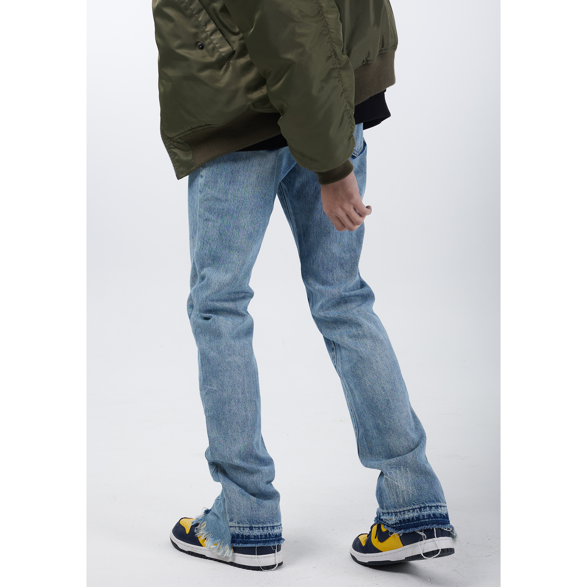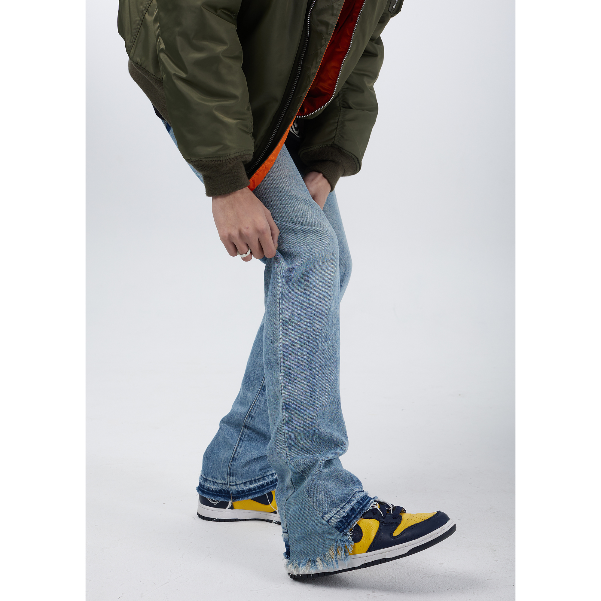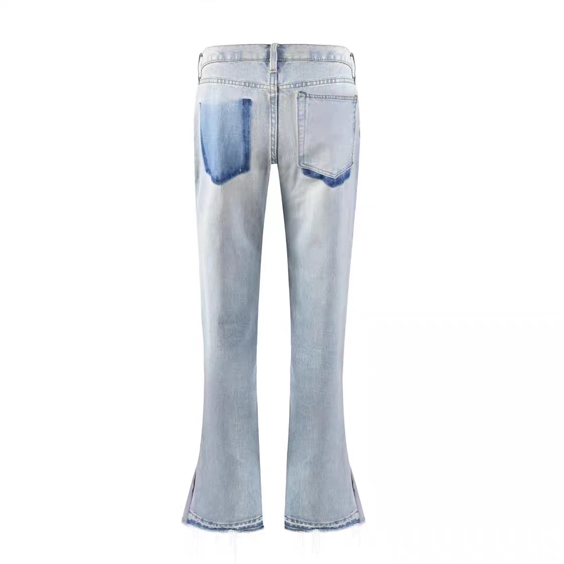 WANNA LAB washed splicing damage as old straight drum blue denim microhorn pants long pants male and female pants damp
