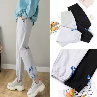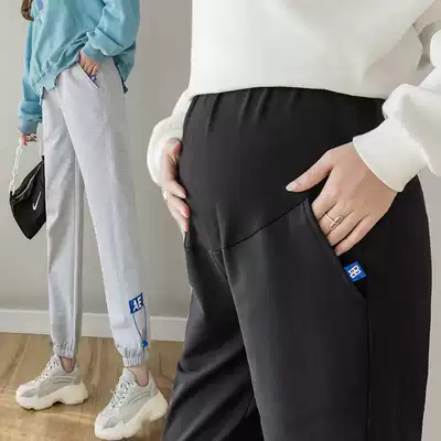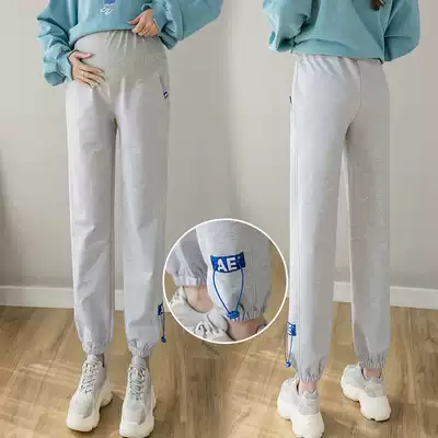 Pregnant women's sports pants spring and autumn thin outer wear 2021 new loose leg bottoming harem pants thin casual thick cotton pants
