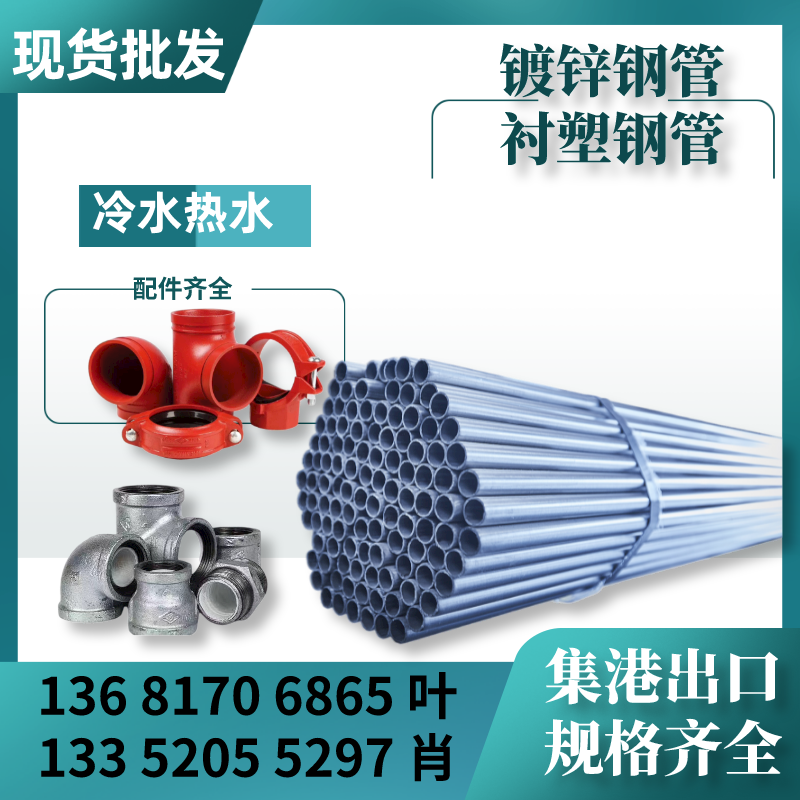 Steel plastic composite pipe -- fire hot water cold water lining plastic steel pipe -- lined plastic fittings complete national standard warm lining plastic pipe