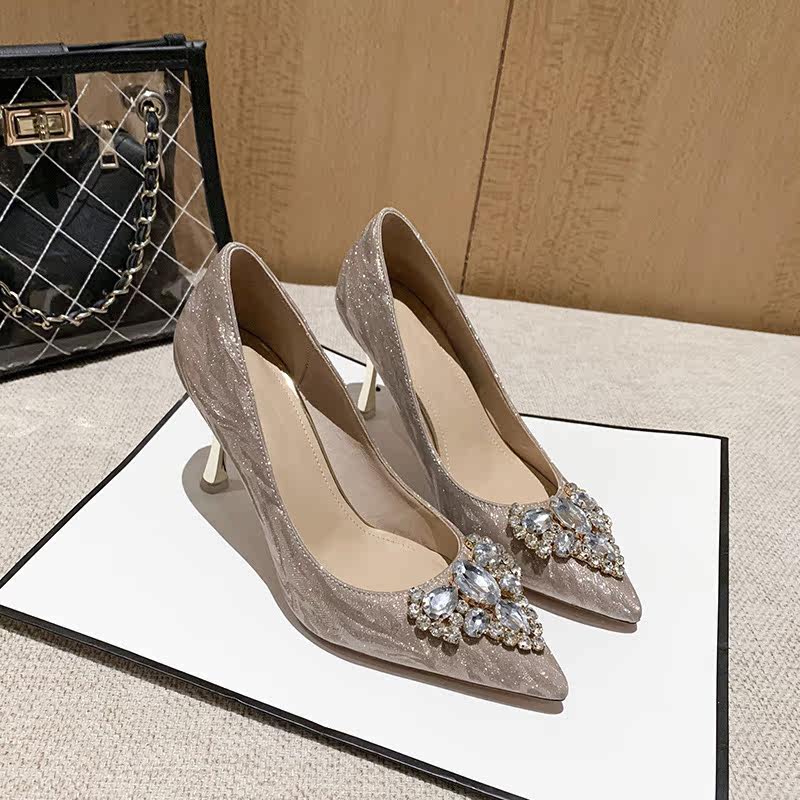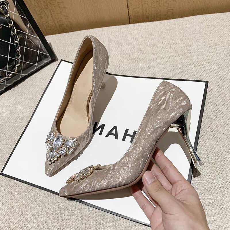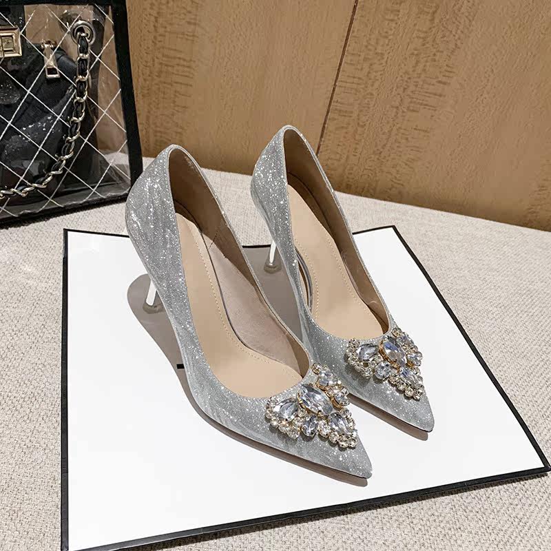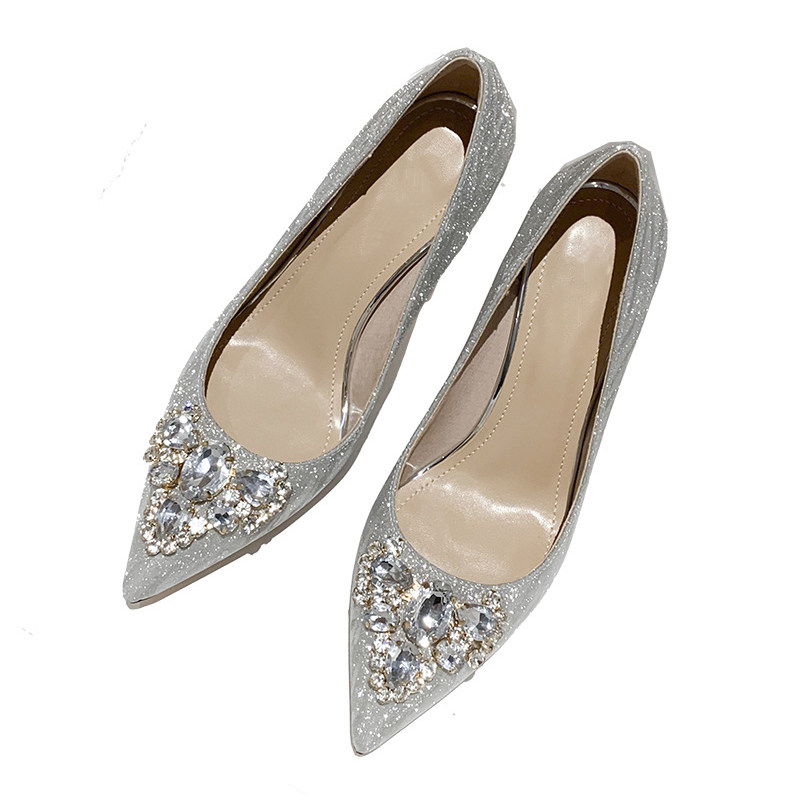 French main wedding dress high heels female pointed wedding shoes crystal shoes winter silver gold stiletto bride bridesmaid shoes