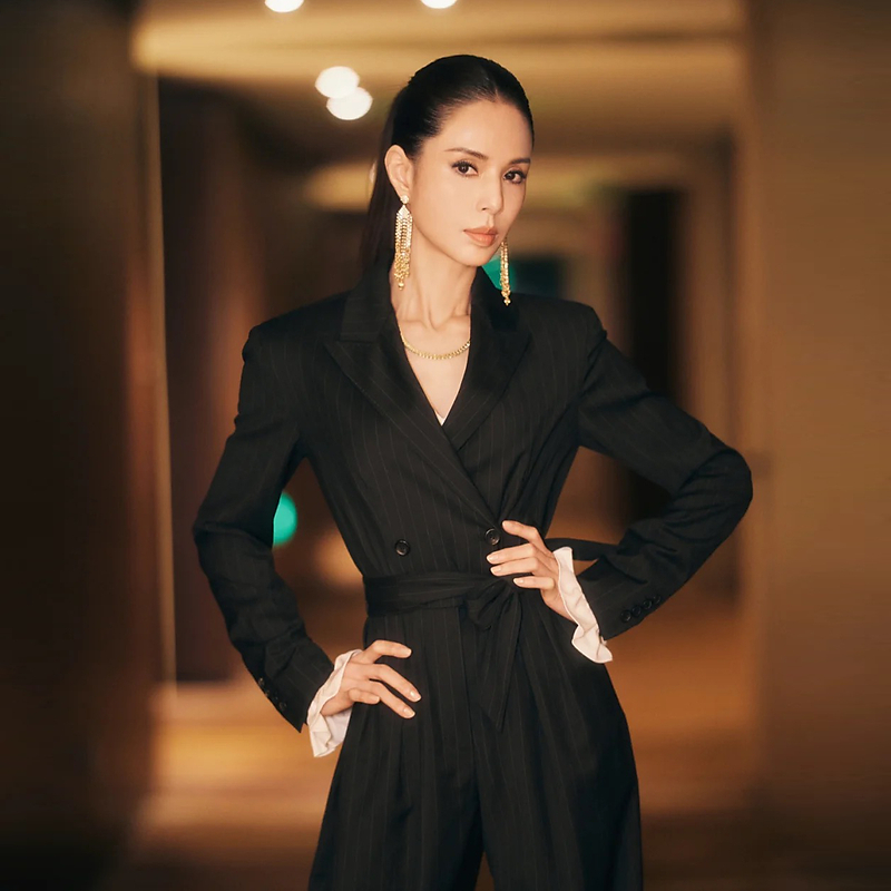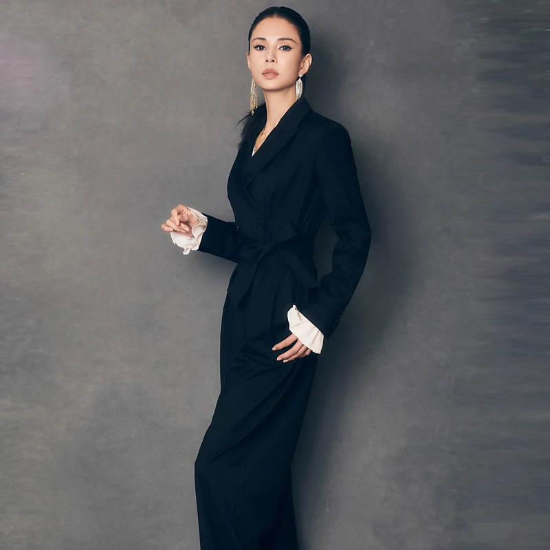 COCO High-end 2022 Spring new Li Jortong stars the same fashion stripe to be slim OL Temperament Swarm Pants