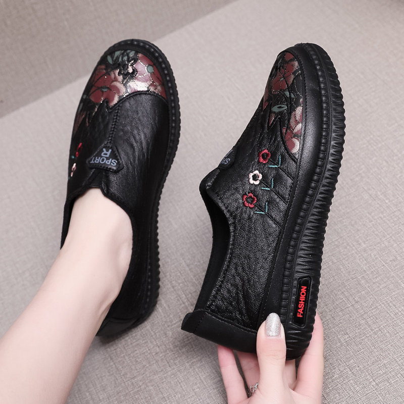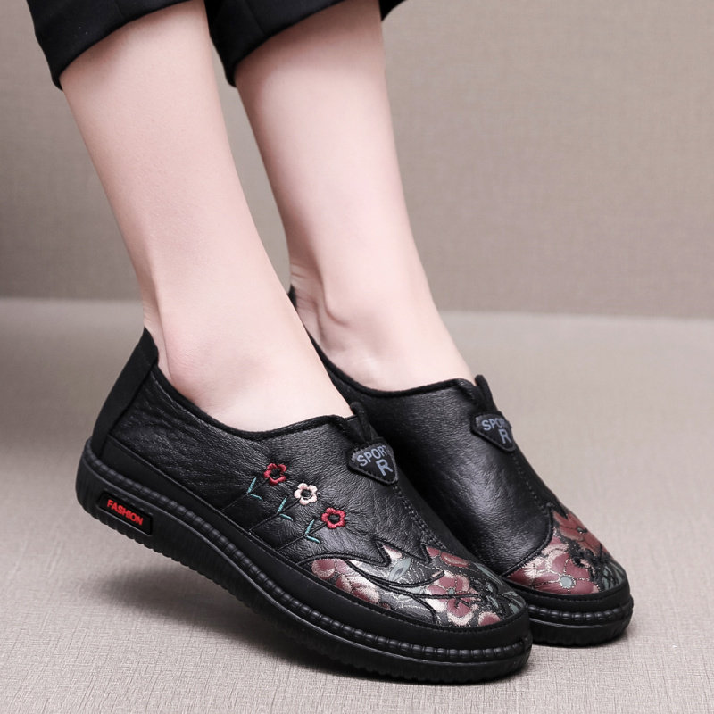 Spring and autumn mother shoes old grandma shoes flat bottom round head non-slip middle-aged and elderly old Beijing cloth shoes women's casual shoes