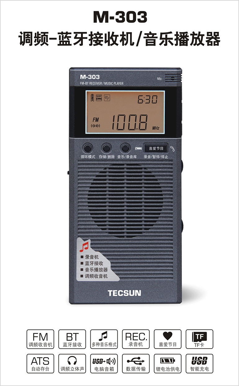 Tecsun Desheng M-303 Pocket FM Radio Bluetooth Receiver Music Player Recorder