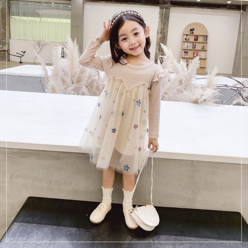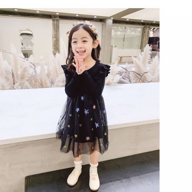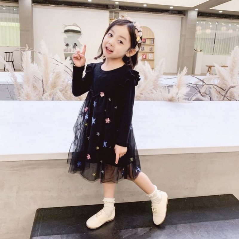 Girls Autumn Winter Yangqi Dress 2021 New Kids Little Girl Princess Skirt Mesh Long Sleeves Kids Skirt