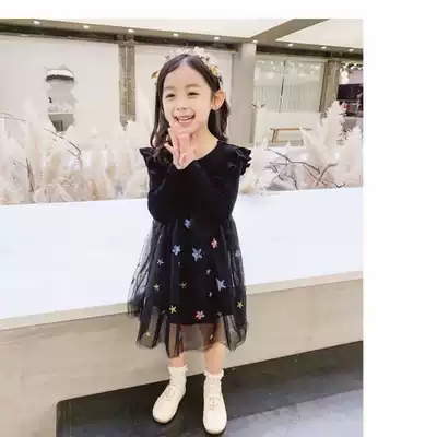 Girls spring dress Western style dress 2021 new children's clothing little girl princess dress mesh long-sleeved children's skirt