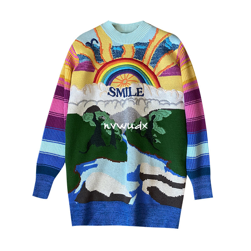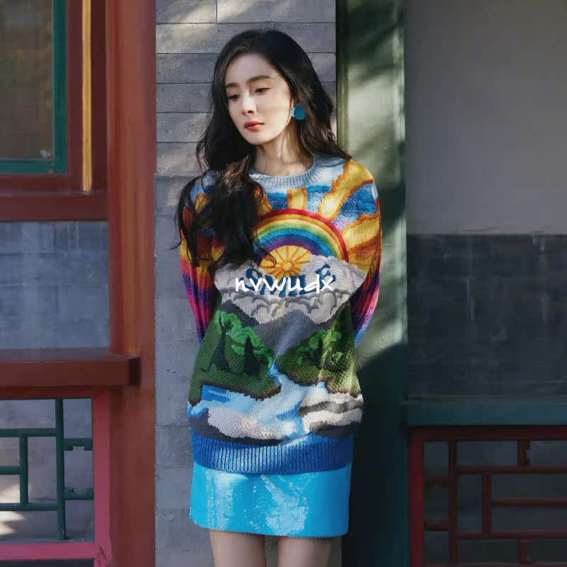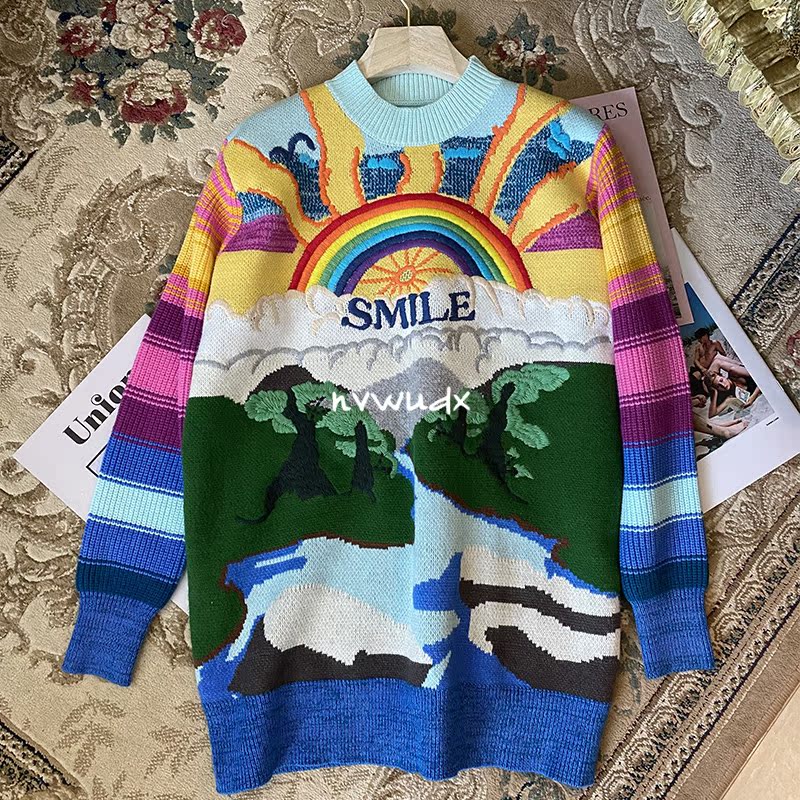 Sandro Duffy star Yang power the same sweater autumn-cash-knitted sweatshirt rainbow embroidered round collar jacket headcoat female