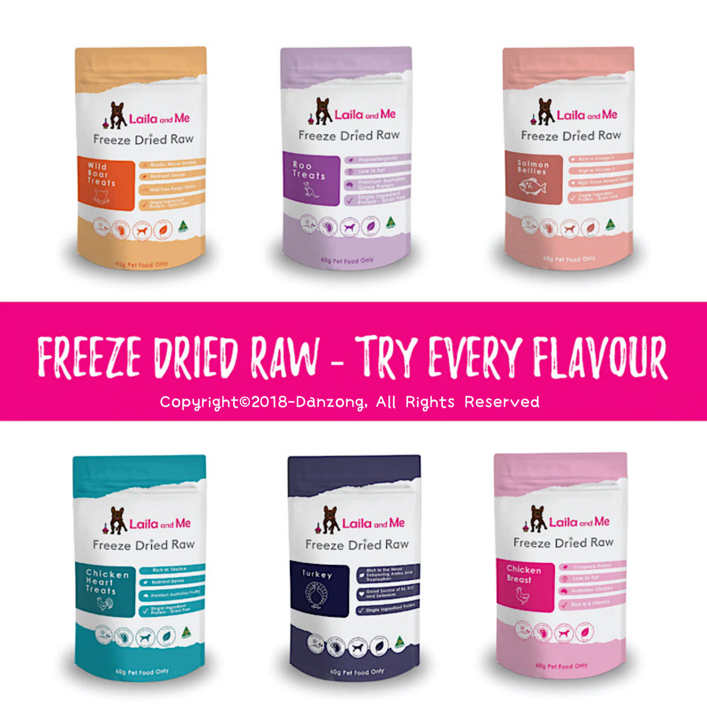 Australia Laila and Me Wild Boar Kangaroo Beef Chicken Heart Pure Meat Freeze-dried Reward Snacks for Cats and Dogs 60g