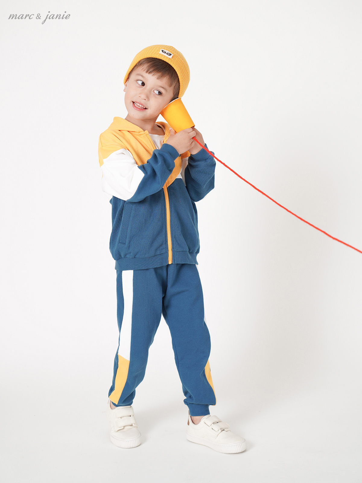Marcjanie Mark Jenny Autumn Boys Hit Color Hooded Sports Suit Children's Suit 213285
