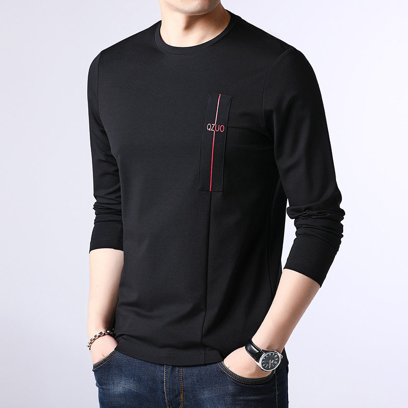 Mulberry silk round neck thick cotton T man 2020 spring autumn season new trend Korean version pure cotton men's long sleeve T-shirt slats bottom