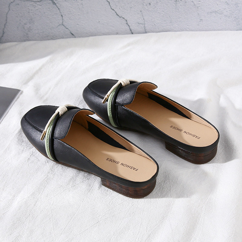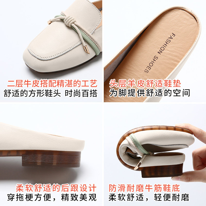 Baotou half slippers women's 2022 new outer wear fashion thick heel square toe mules leather heelless shoes