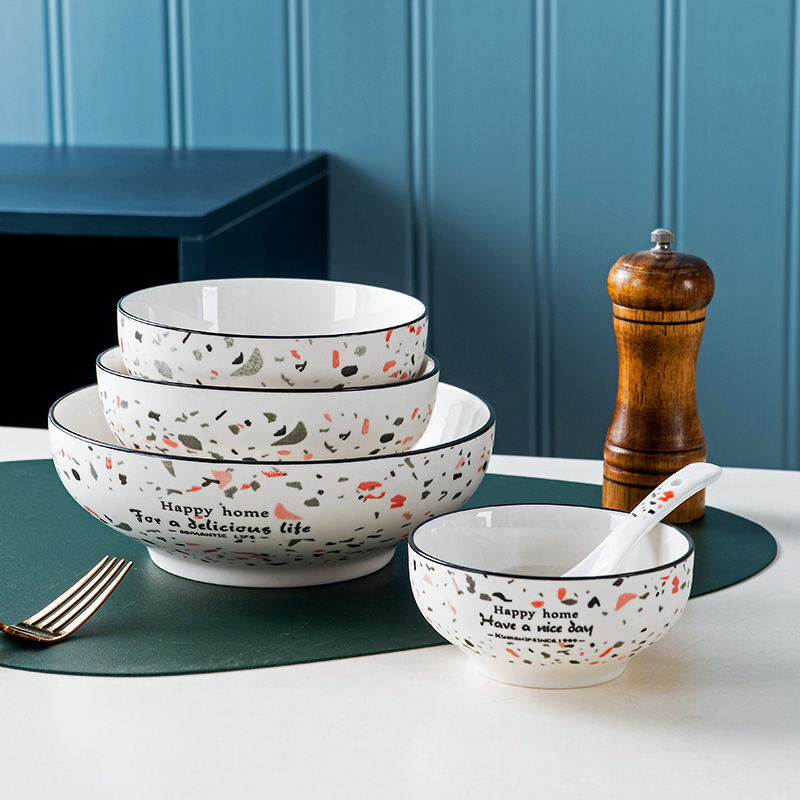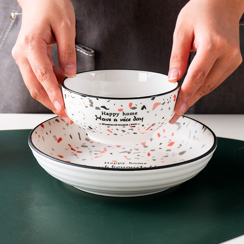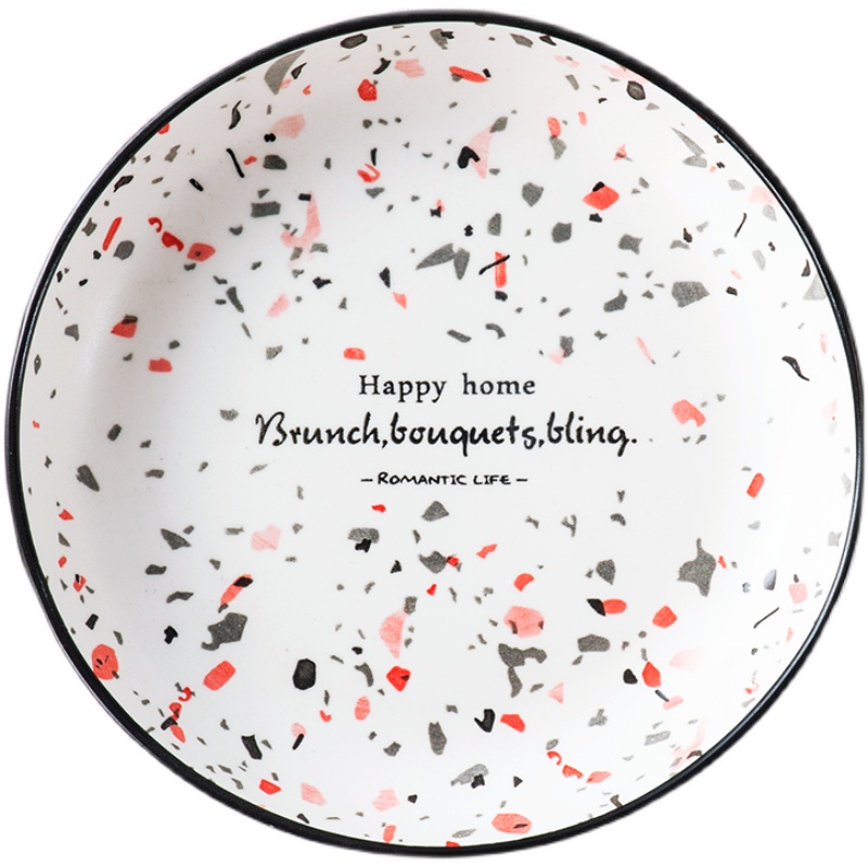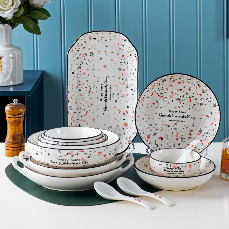 Nordic terrazzo rice bowl ceramic tableware mesh red disk 10 packed noodles in household combination bowl suit