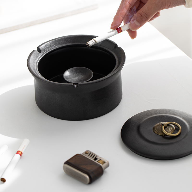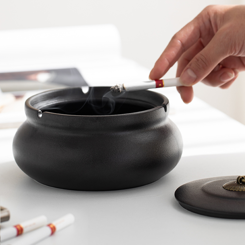 Round smoking Ashtray Matt Round with Truscan Ashtray Matt Round Cigarette Ash Tray Coarse Pottery With Lid Cigarette Ash Tray Coarse Pottery Round with Rack Smoke Frame Coarse Pottery hexagonal Smoky Ashtray Black Pottery Poly-Tobacco Ash Tray