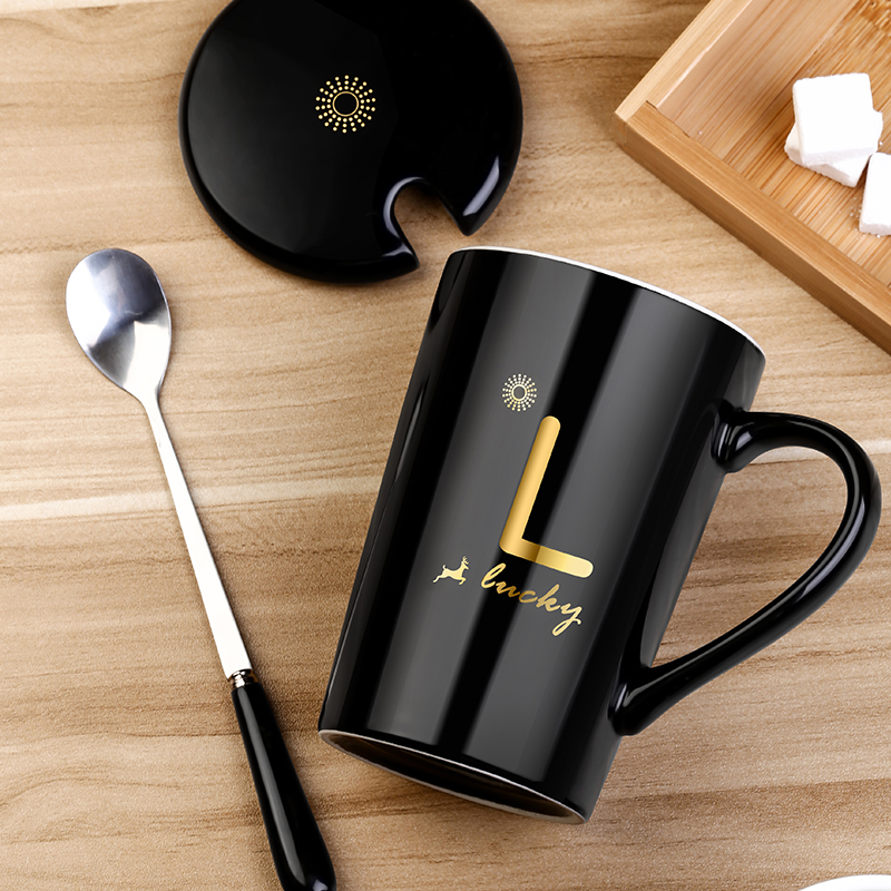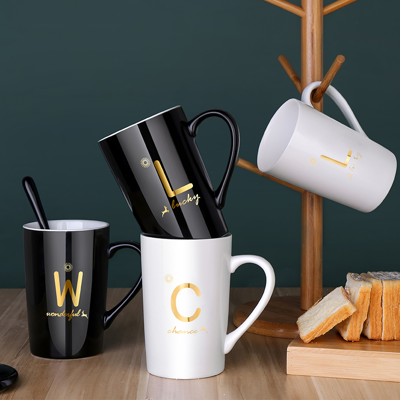 Pure White Single Cup No Cover Spoon True Gold Letter White-L True Gold letter White-Z True gold letter White-Z True gold Alphabet White -X Real Gold Letter White-Q True Gold Letter