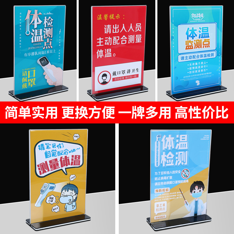 Epidemic prevention and control prompt card epidemic prevention and disinfection identification card hospital table plate body temperature detection desktop upright informing table board
