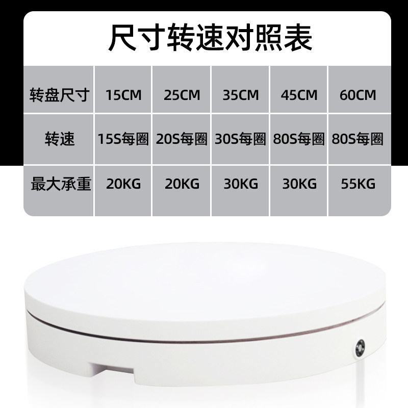 15cm white turntable (15 s lap load bearing about 20kg) 15cm black turntable (15 s lap load bearing about 20kg) 25cm white turntable with LED