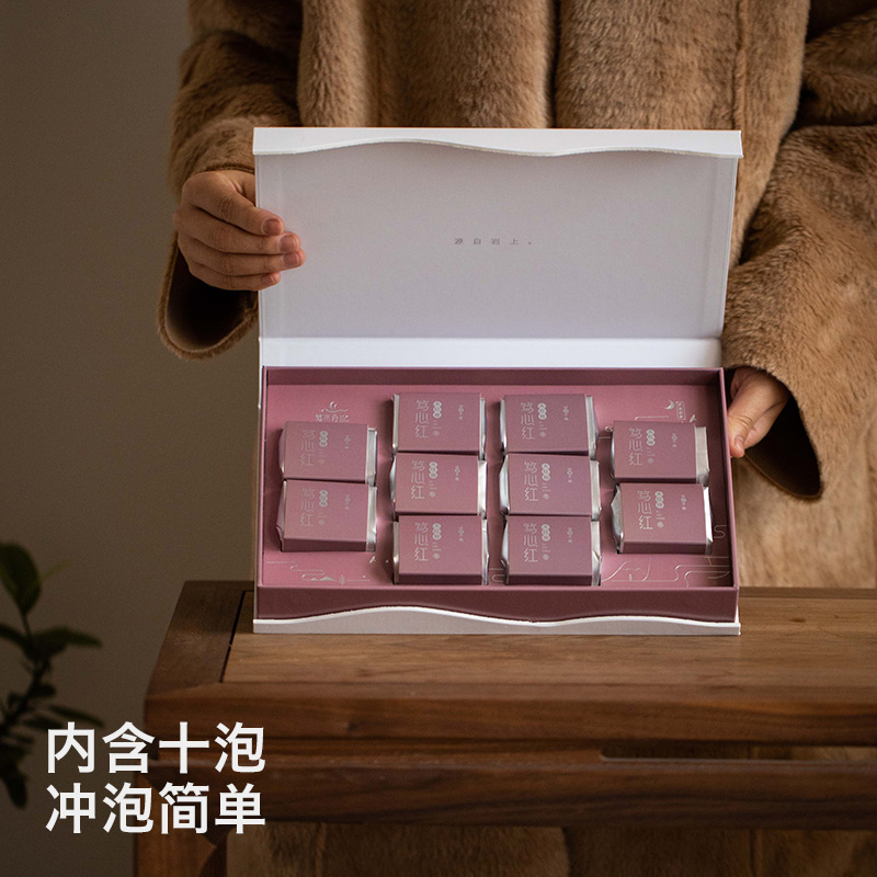 Tea Yan Elector Liu Guoying Teacher's supervision Tuk Heart Boat Wuyi Rock Tea Tuk Hearts Red Big Red Robes 1 Case 10 Bags Total 80g