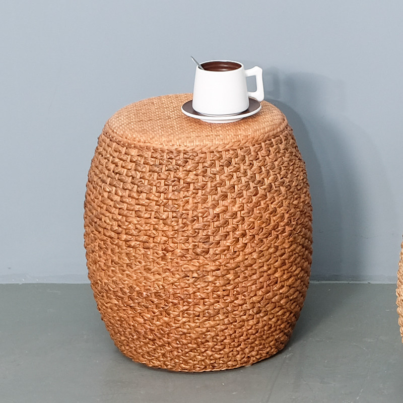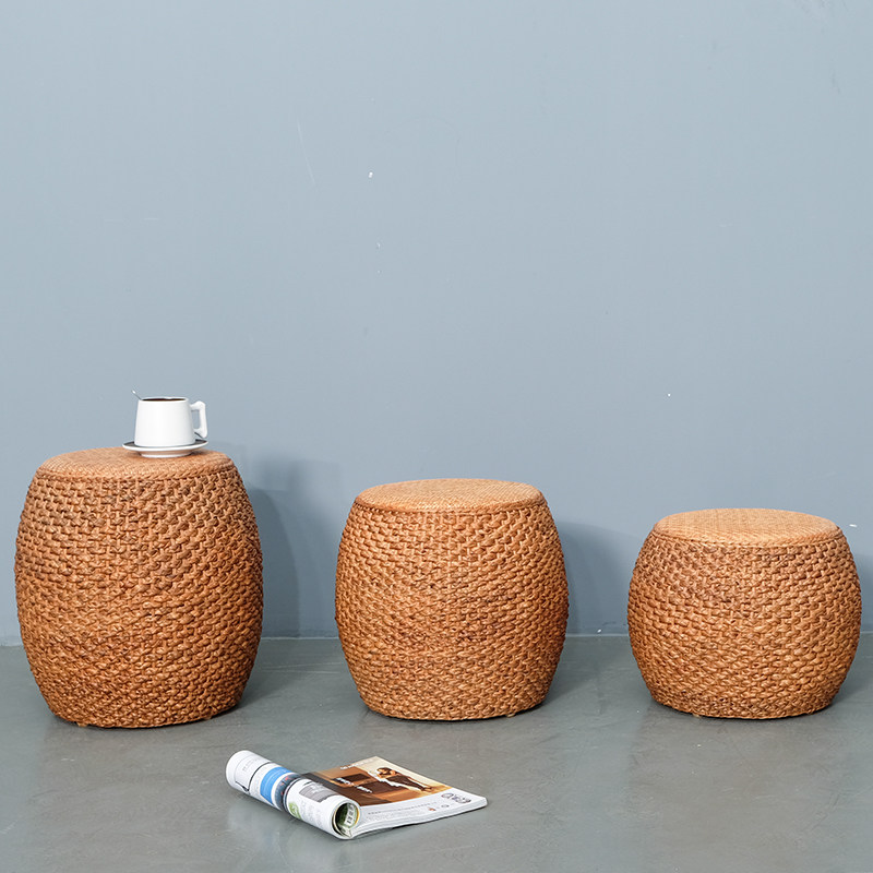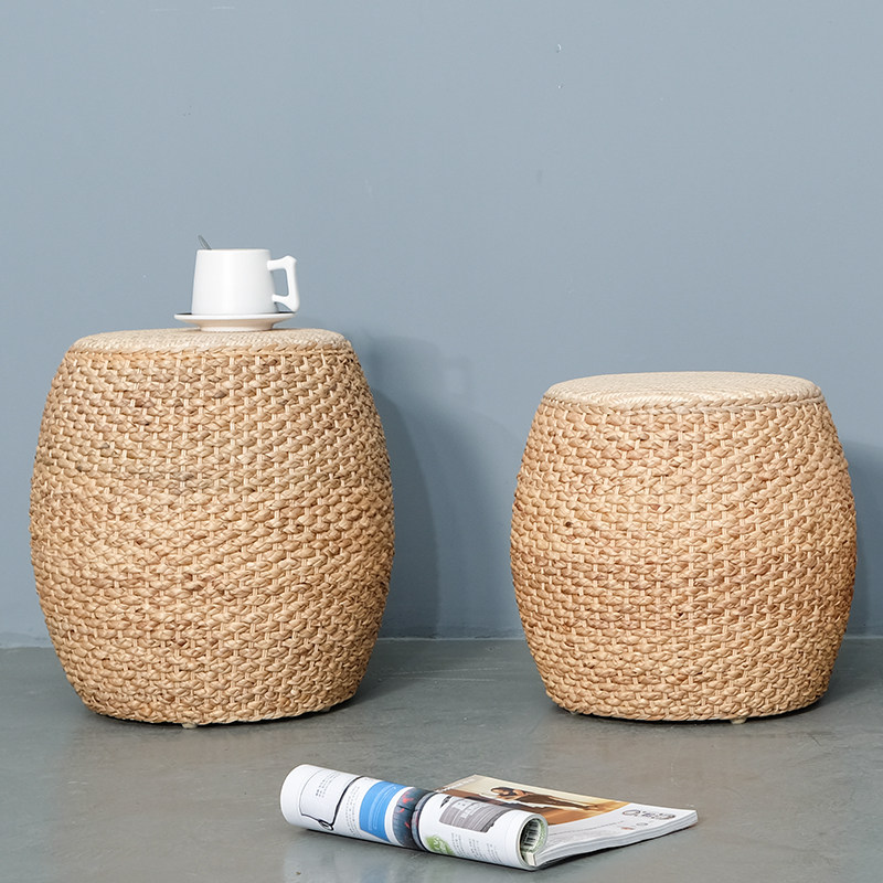 Rattan small stool low stool creative round stool small bench home living room sofa stool simple solid wood stool sitting stool pier