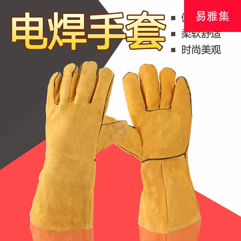 Red cowhide size average Yellow leather size double leather gloves size one size