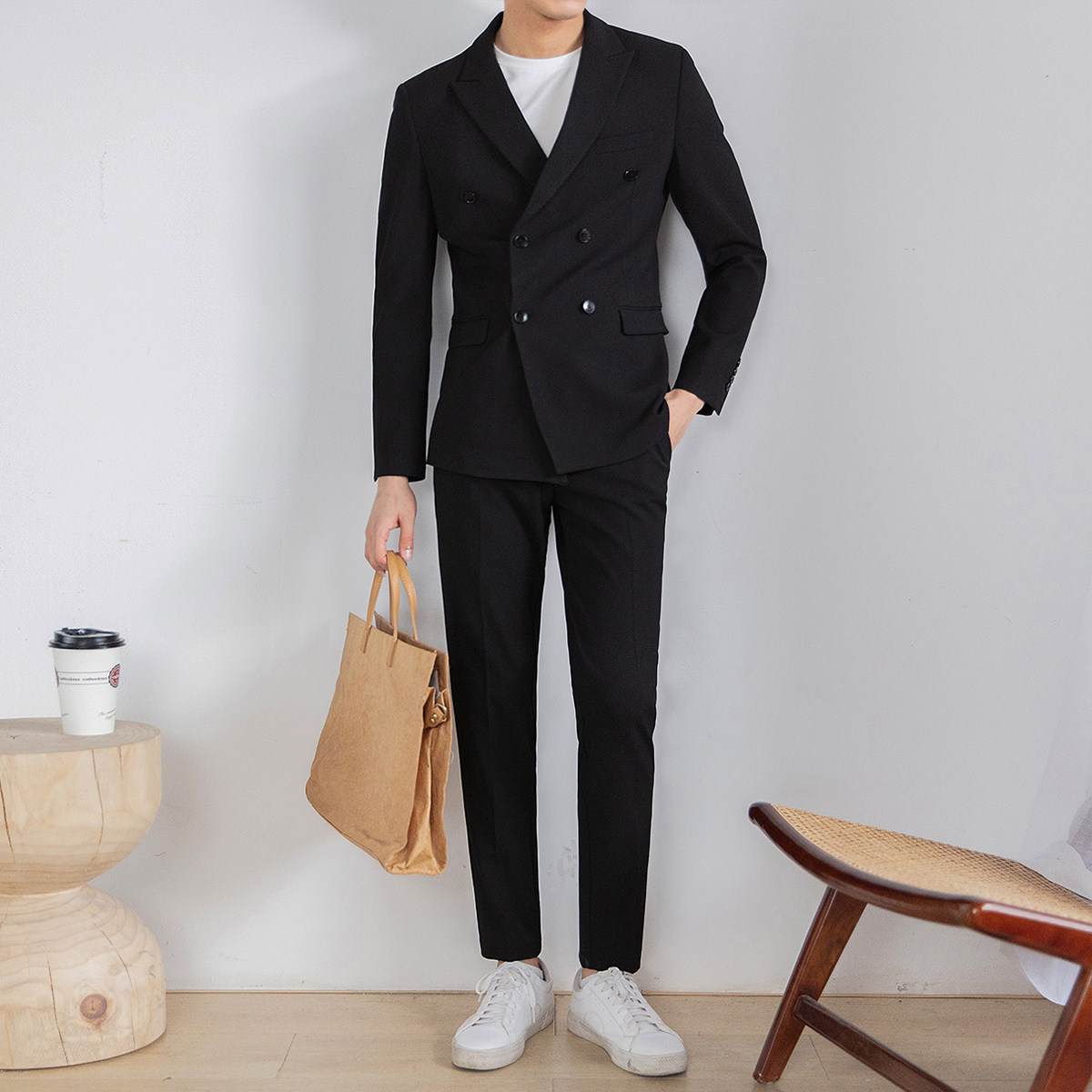 Spring suit men's body young Han version casual handsome gas double-row buttoned men's suit suit Business is loading two sets