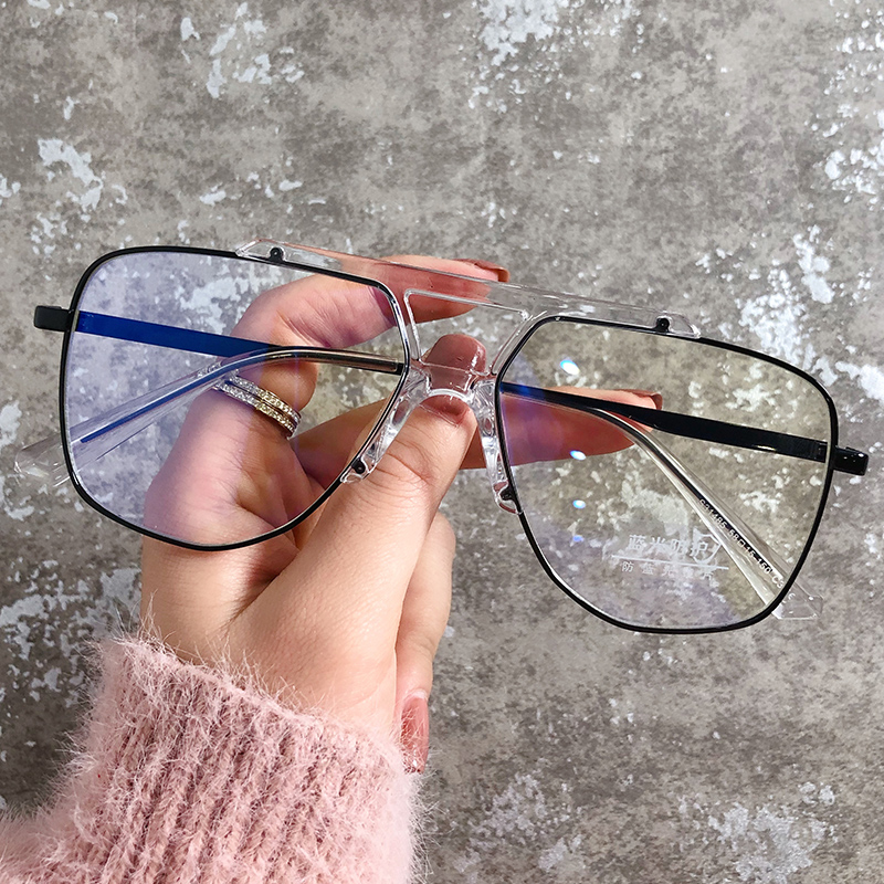 Chen Weiting with the same kind of yuppie handsome glasses male tide retro double beam transparent eye frame female with degree discoloration myopia glasses