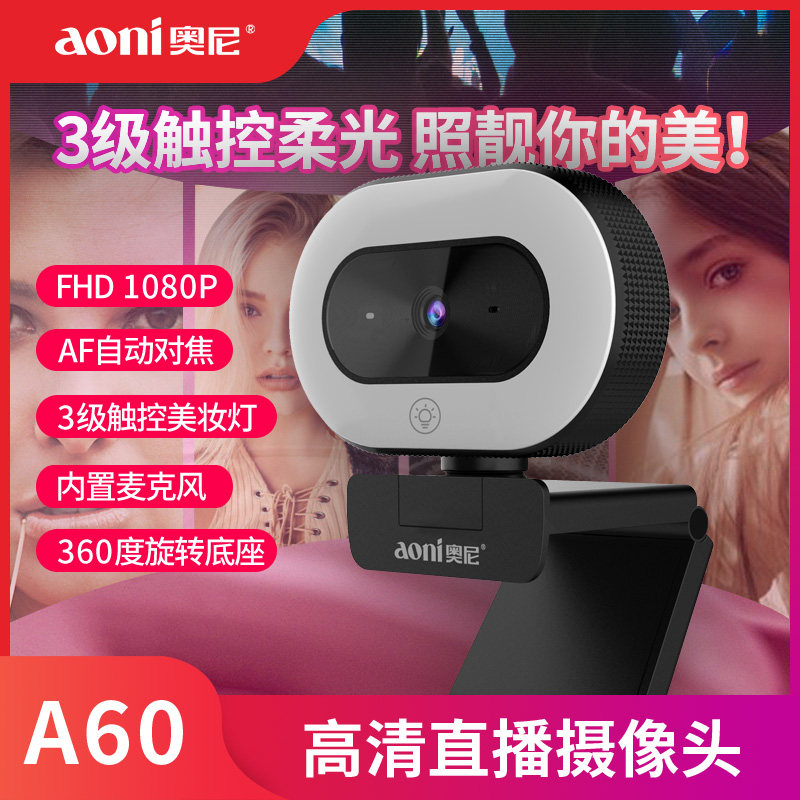 Oni A60 HD 1080P Computer Lens Game Anchor Online Class Live Beauty Light with Microphone