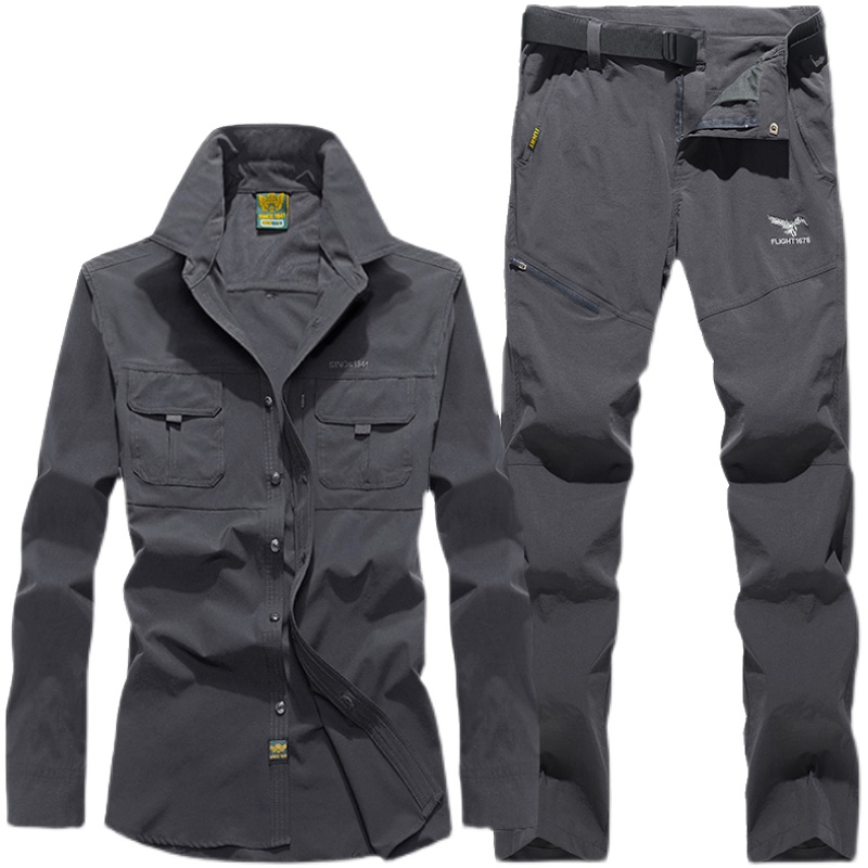 Quick-drying pants set men's stretch mountaineering shirt spring summer ice silk thin loose middle-aged outdoor sunscreen overalls