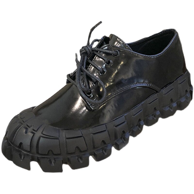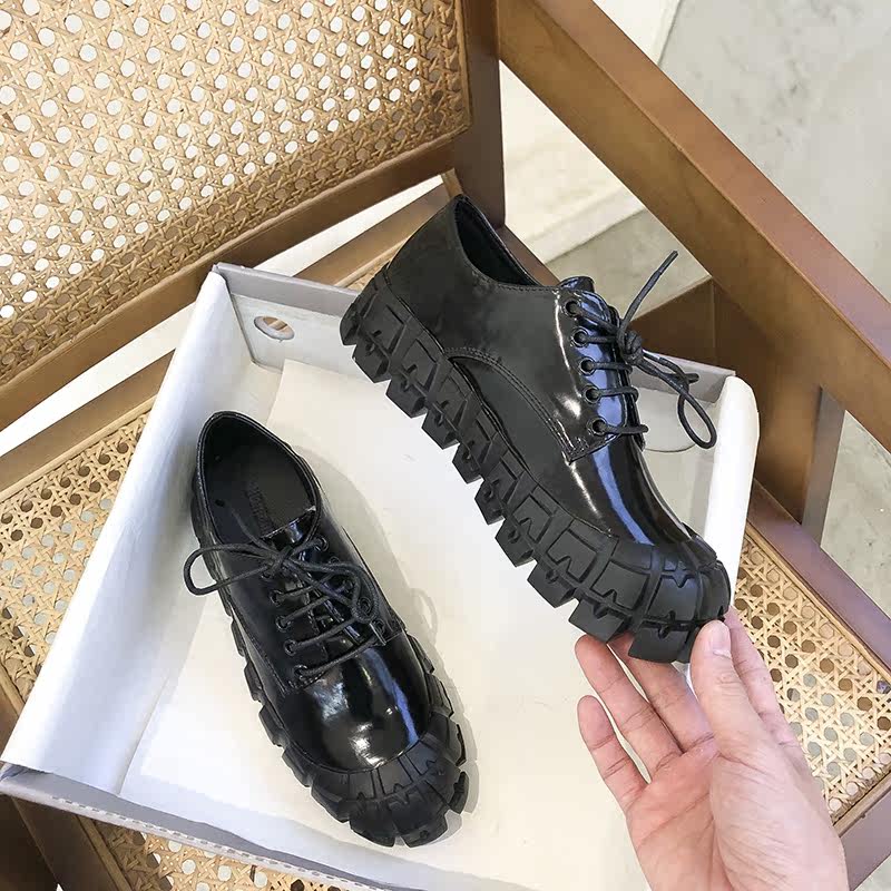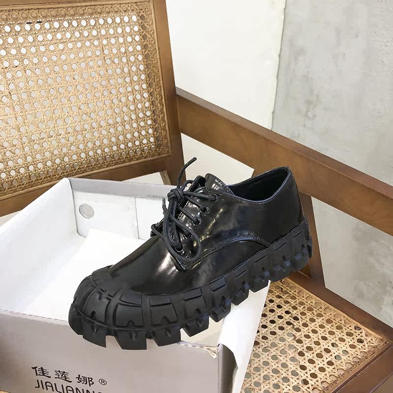 Small leather shoes women's British style 2021 new thick bottom increased all-match round head lace up gear ins tide single shoes women