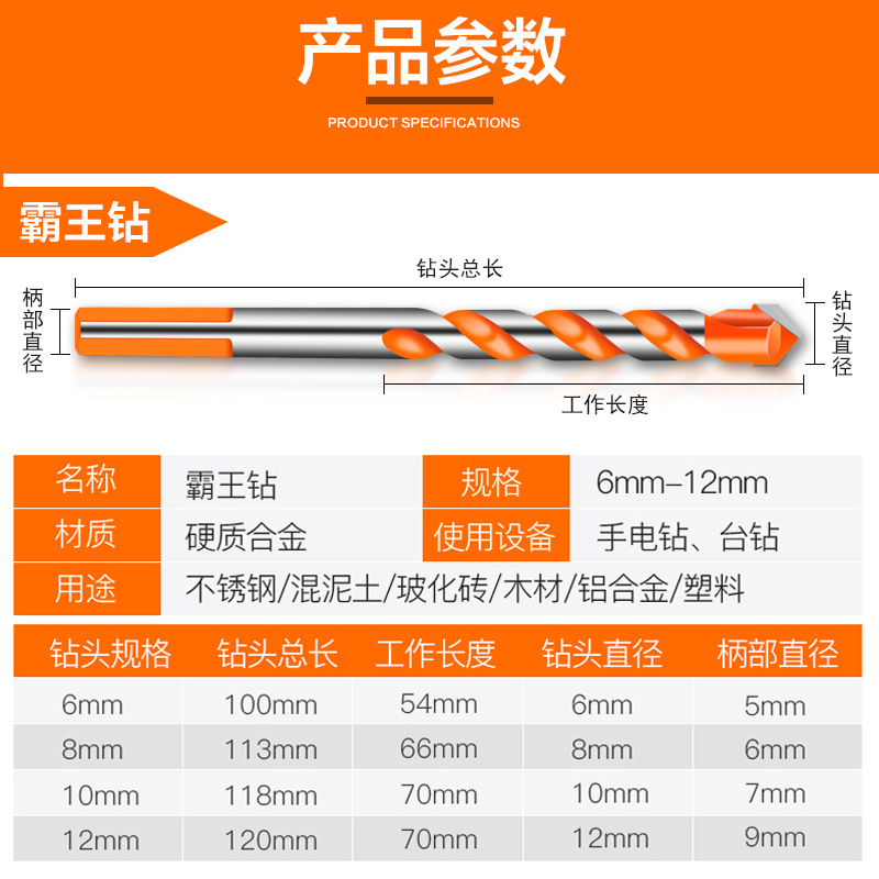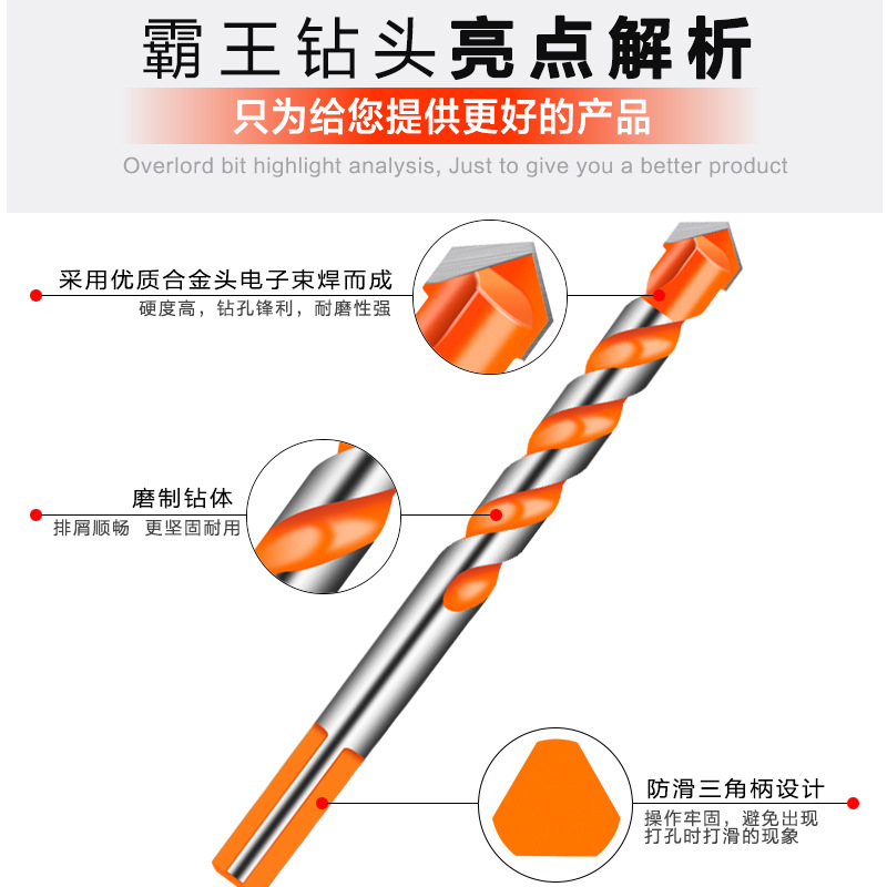 Alloy triangle bully drill bit tile cement wall marble ceramic multi-function drill set punch drill