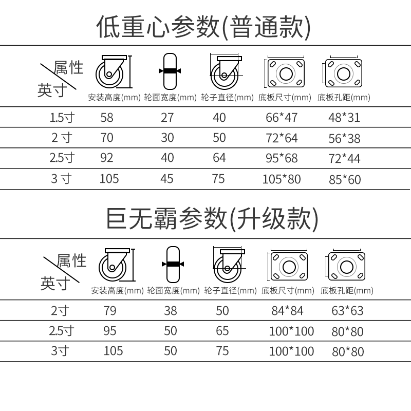 15 inch standard (2 set 20,000) 15 inch standard(2 set 2 brake) 2 inch standard(2 set 20,000) 2 inch standard(2 set 2 brake) 2 5 inch standard(2