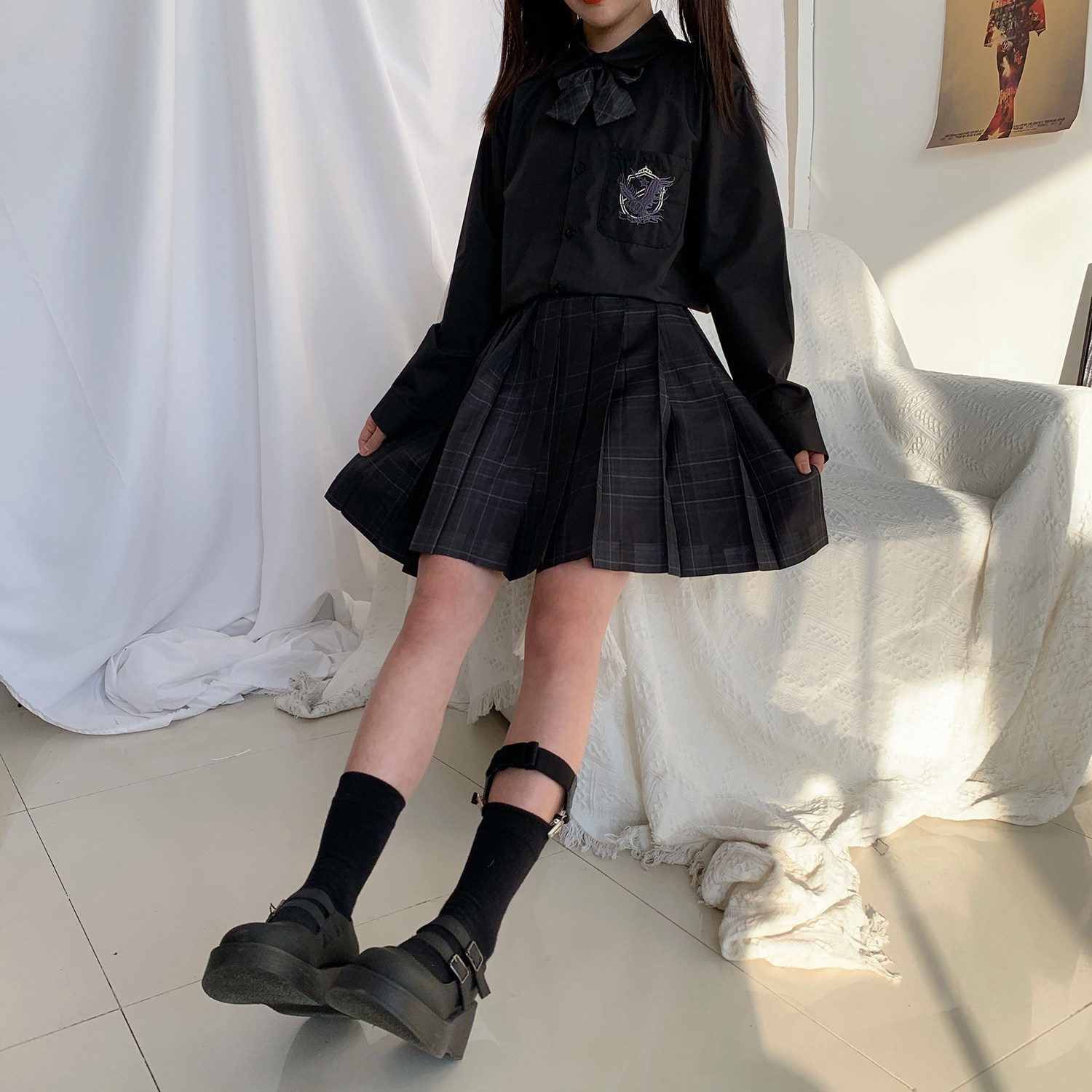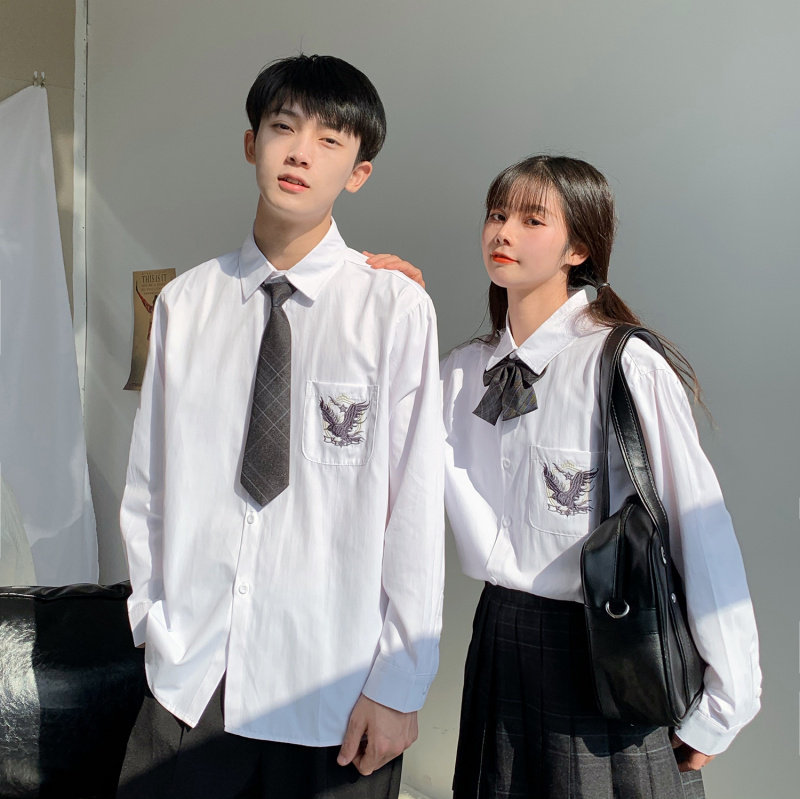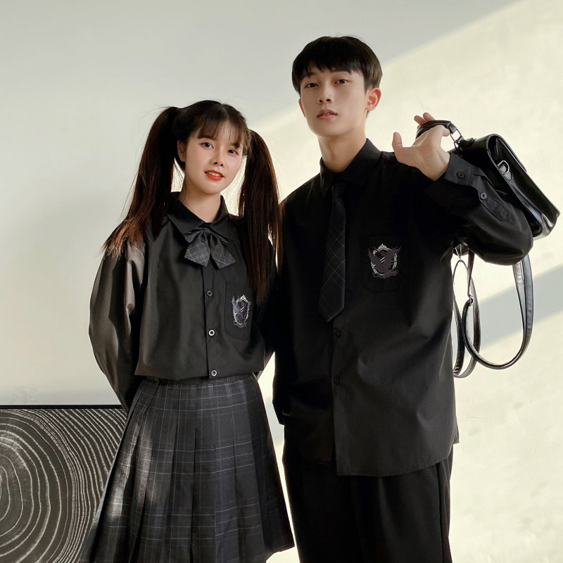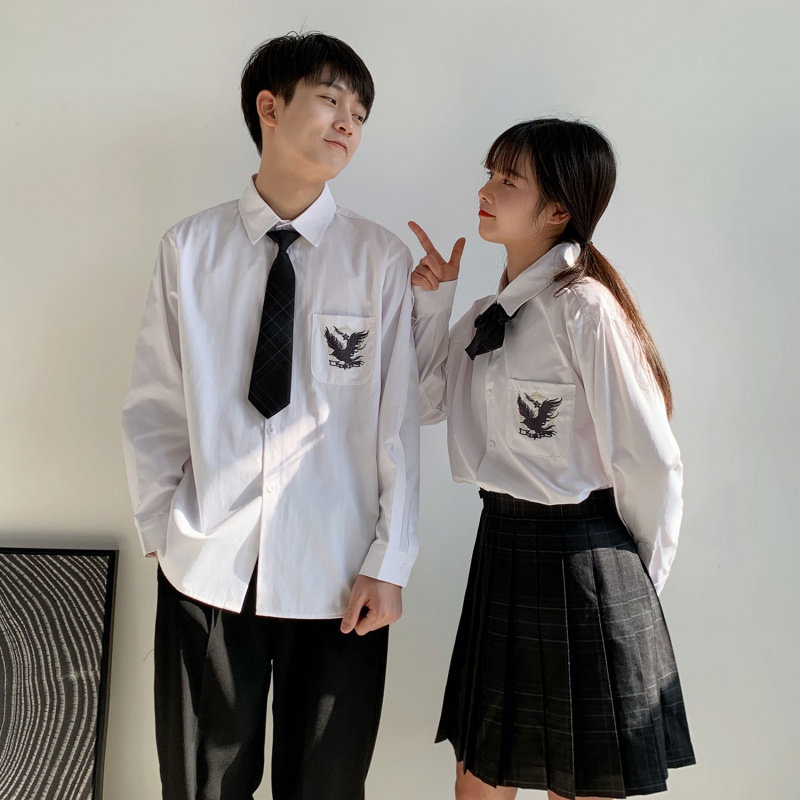 dk uniform men's high-end shirt Hong Kong style Japanese college style couple jk tie shirt class clothes loose clothes