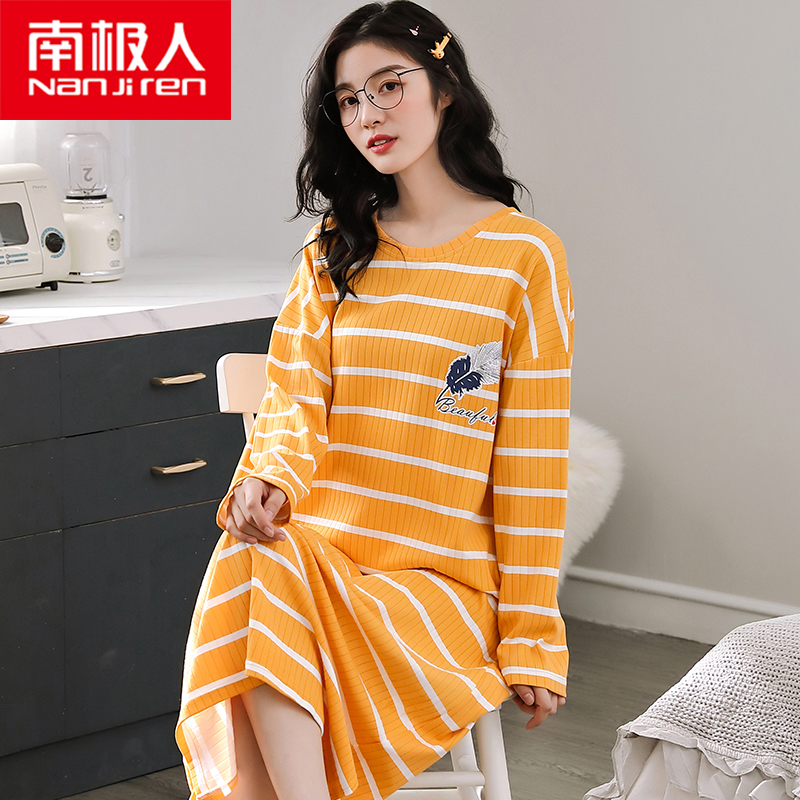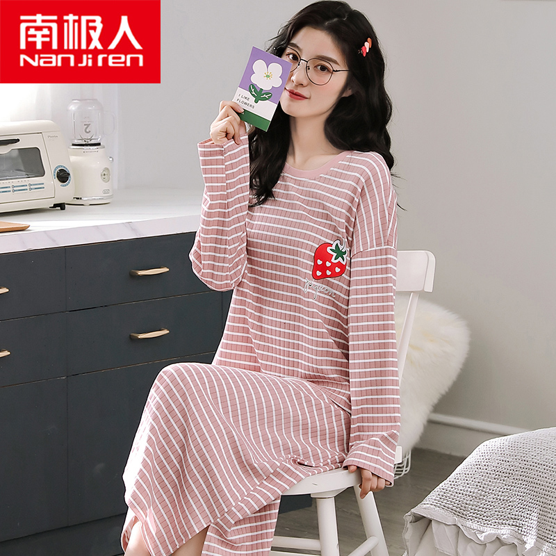Antarctic nightdress women's long-sleeved cotton spring and autumn Korean version cute long version long skirt autumn and winter thin pajamas home clothes