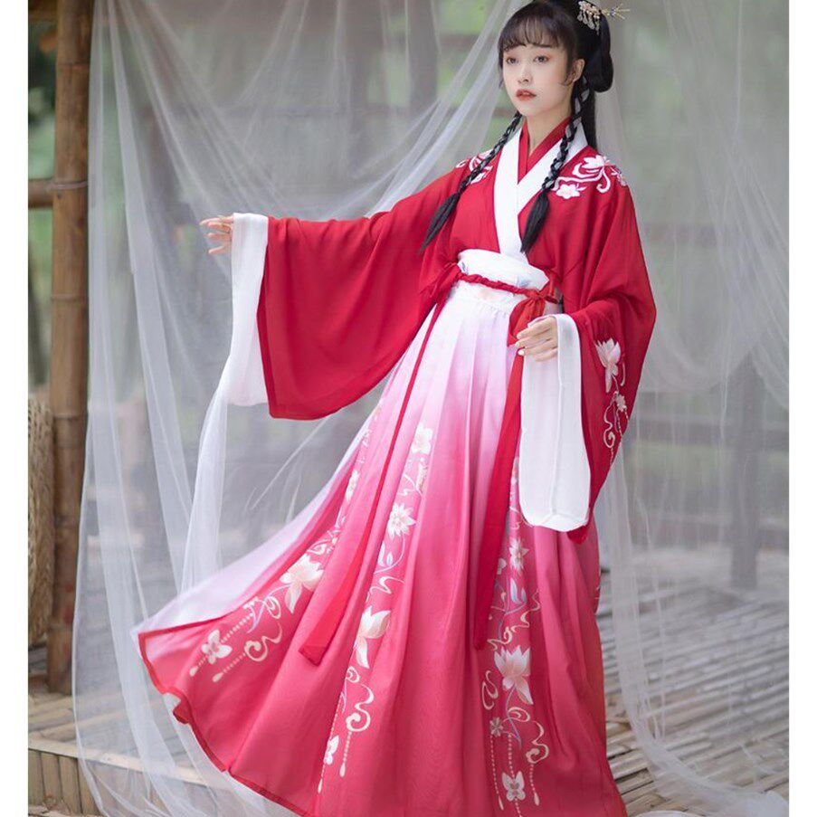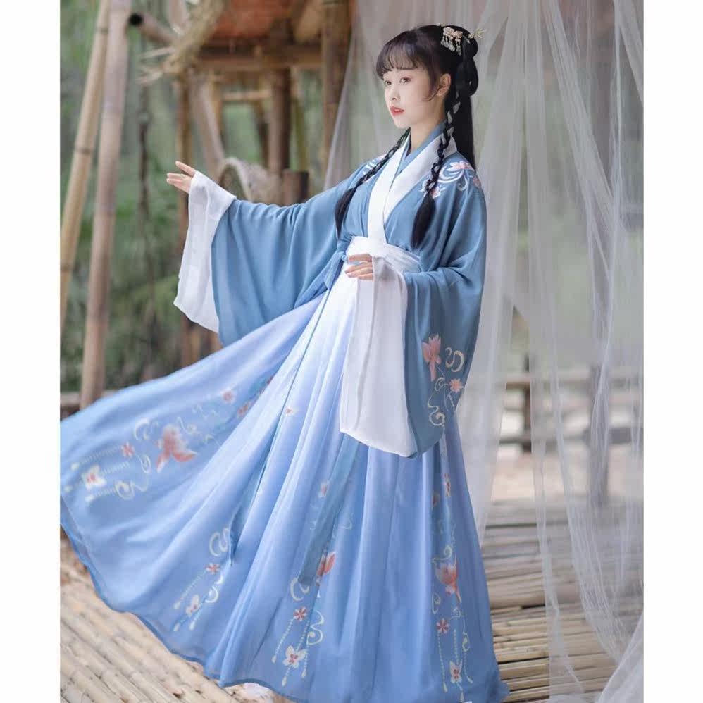 Hanfu female Xianqi (lacquer ferry) Chinese wind flutter with collar and waist jacket skirt student's new super-fairy gust ancient dress
