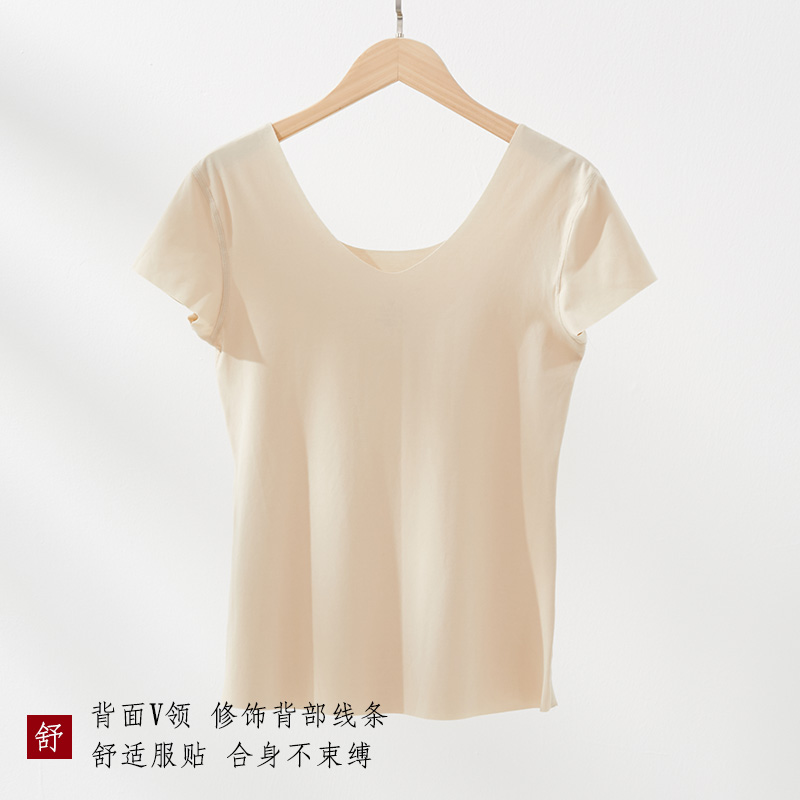 1 piece of long suede cotton short sleeve T-shirt with no marks inside lap low neckline coat meat complexion Body Underwear Thin can be worn outside