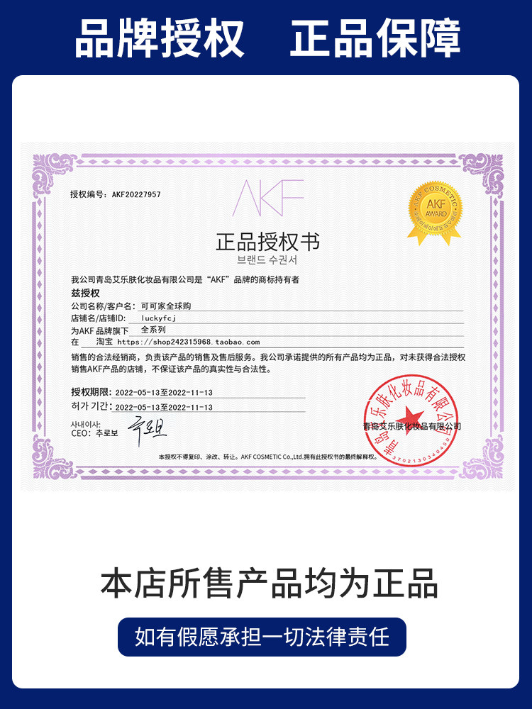 Cosmetics record number Registration certificate number: