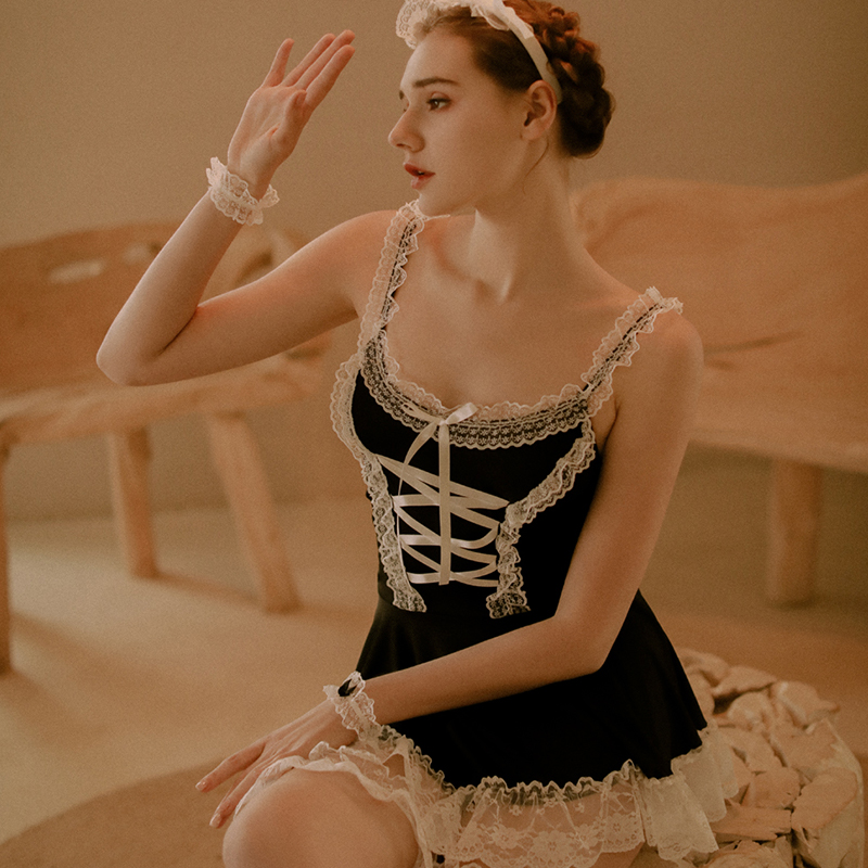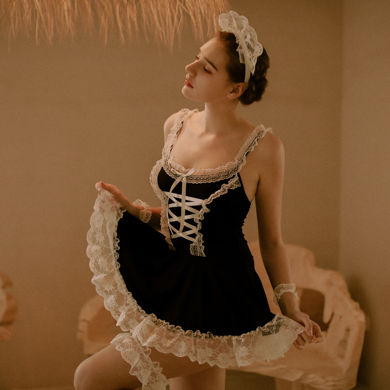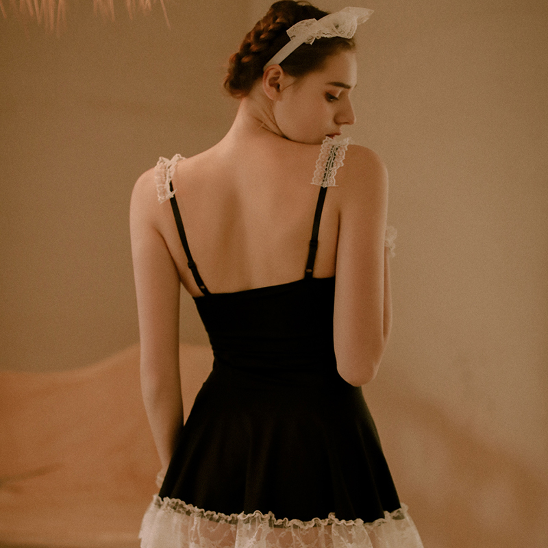 Gentleman ordering a meal? sexy maid dress PASTTEN tube aunt at half past D-059 black and white uniform sleeping skirt suit