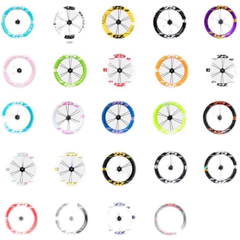 Black (including inner and outer tubes), white and black (including inner and outer tubes), white and red (including inner and outer tubes), blue (including inner and outer tubes), pink and white (including inner and outer tubes), orange (including inner and outer tubes), red (including inner and outer tubes), black and red (including inner and outer tubes)