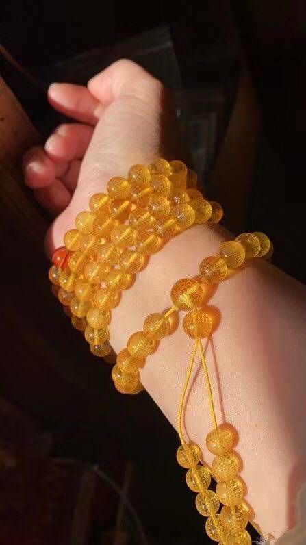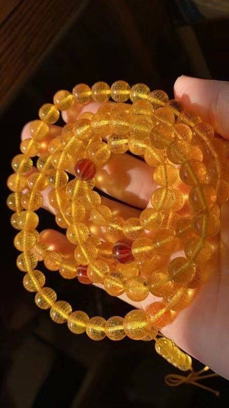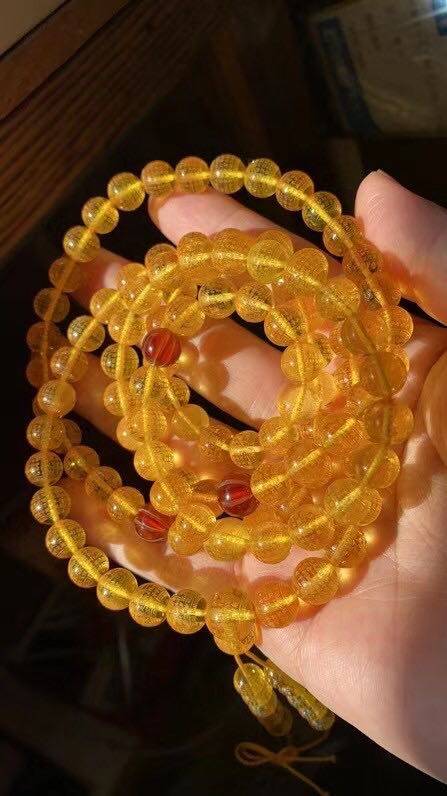 Russian chicken oil yellow water purification Jinpo carved heart bead 108 Buddha beads hand necklace