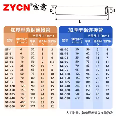 GT GL copper-aluminum connecting pipe, wire intermediate connector, butt connector, thick crimp terminal 4-630 Square