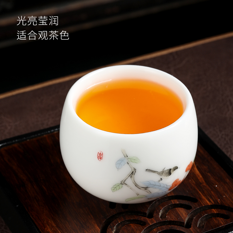 Miaolian Tianxiang pearl glaze hand-painted master cup Dehua suet jade single cup female white porcelain personal cup - Taobao