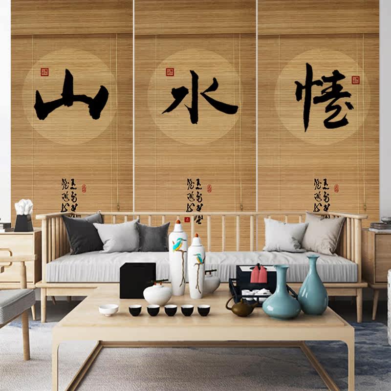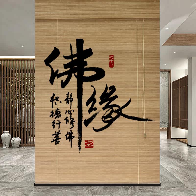 Bamboo Curtain Roller Blind Curtains Hotel Living Room New Chinese Home Shading Sun Sun Style Printed Tea Room Road Screen Partition