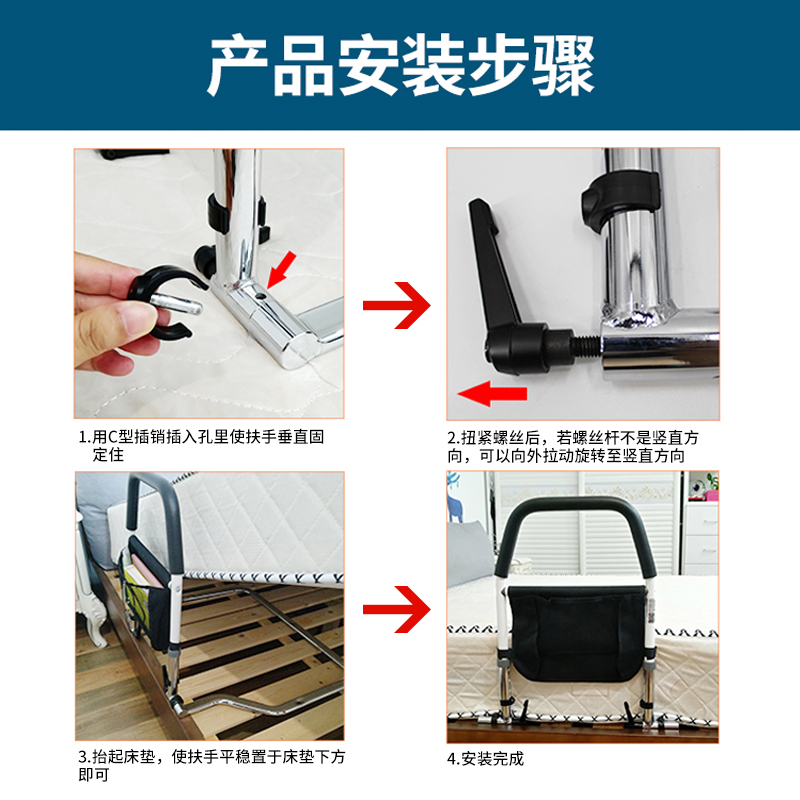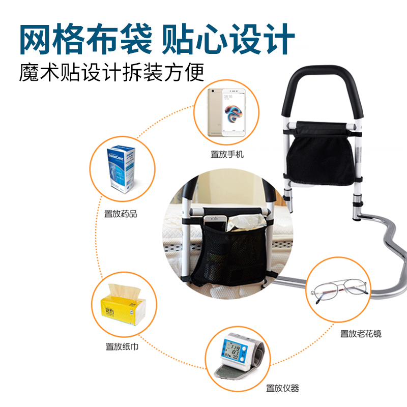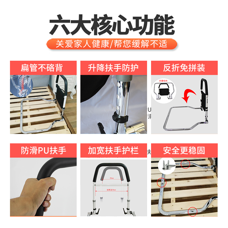 Bedside Armrests Elderly Erector Get Up Aids Home Bed Railings Anti-Fall Boost Guard Rail free of punch